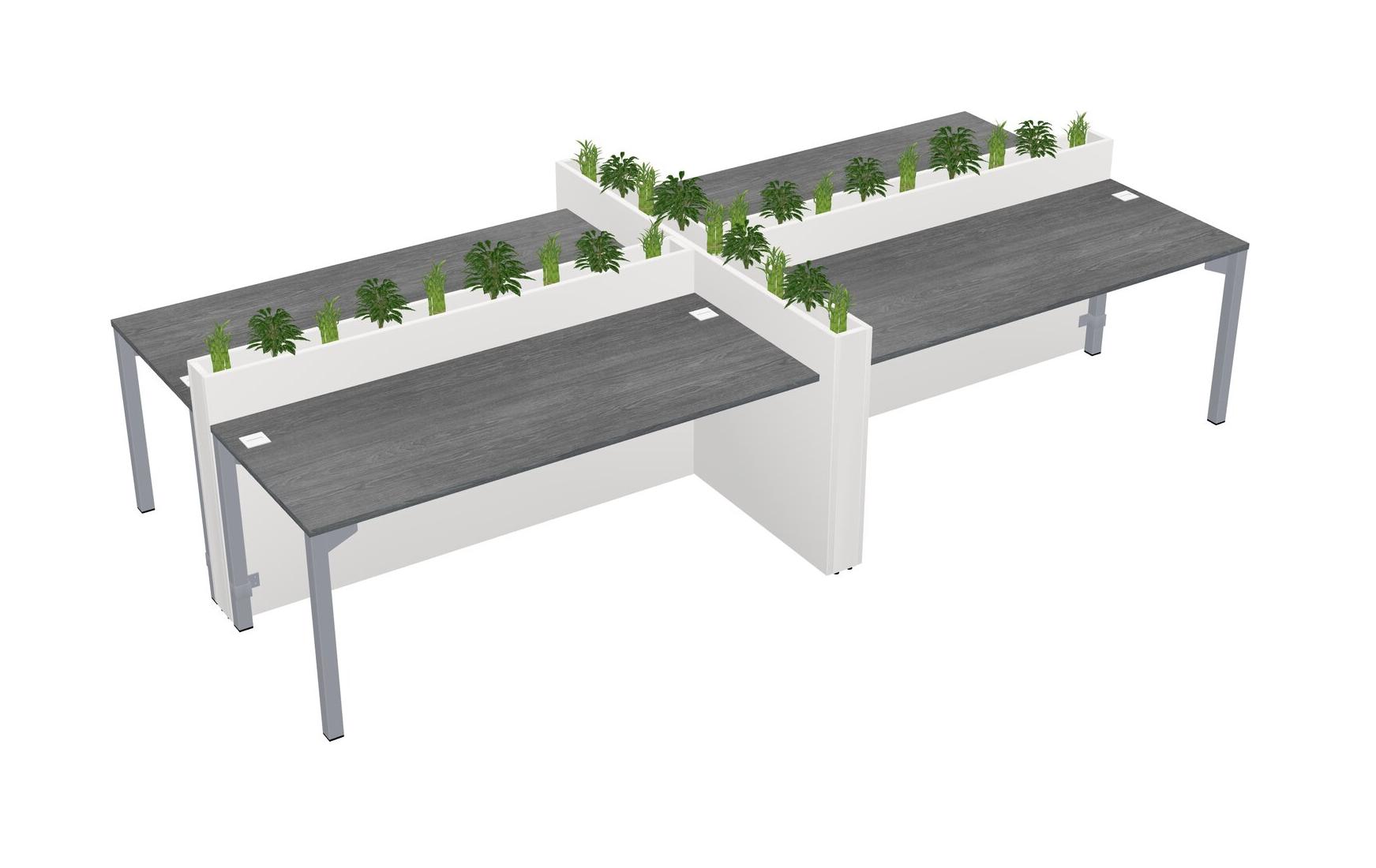 Grey Rectangular Shared Office Desk For 4 Persons Let Nature Help Flourish Your Productivity The Base Comes With An Adjustable Shelf To Provide Space For Pots (Pots & Plants Sold Separately)