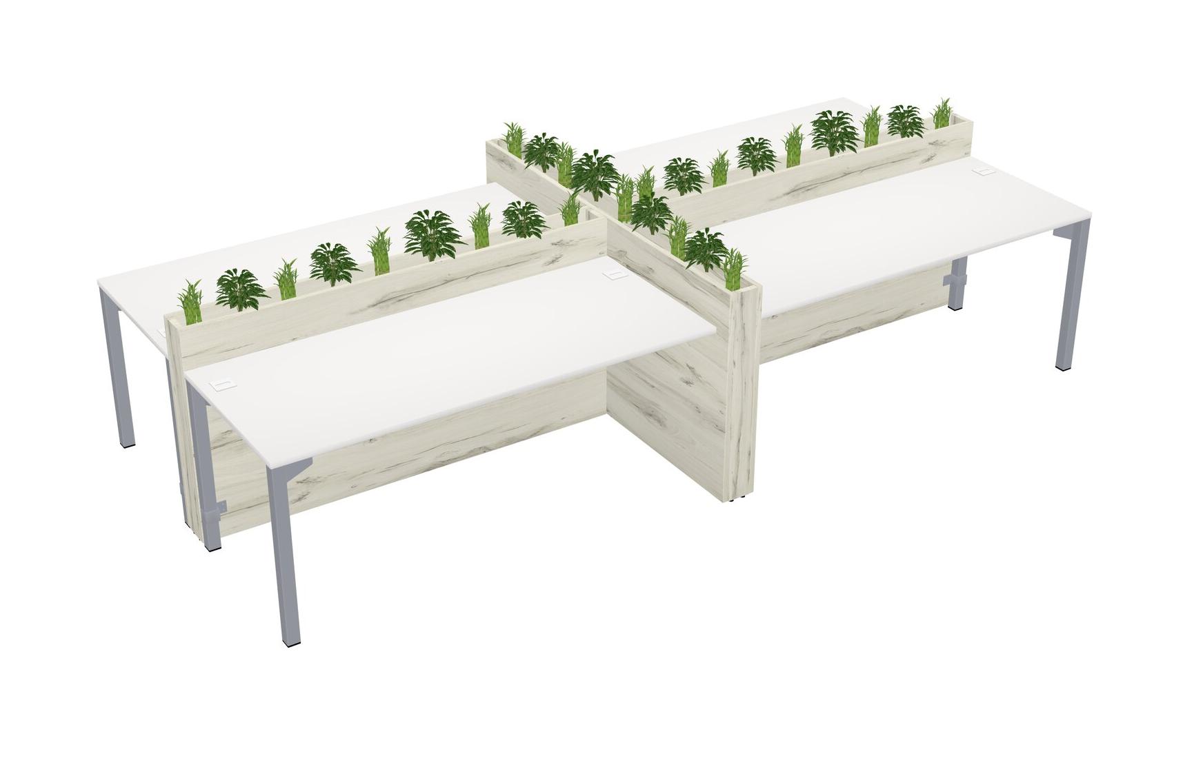 White Rectangular Shared Office Desk For 4 Persons Let Nature Help Flourish Your Productivity The Base Comes With An Adjustable Shelf To Provide Space For Pots (Pots & Plants Sold Separately)