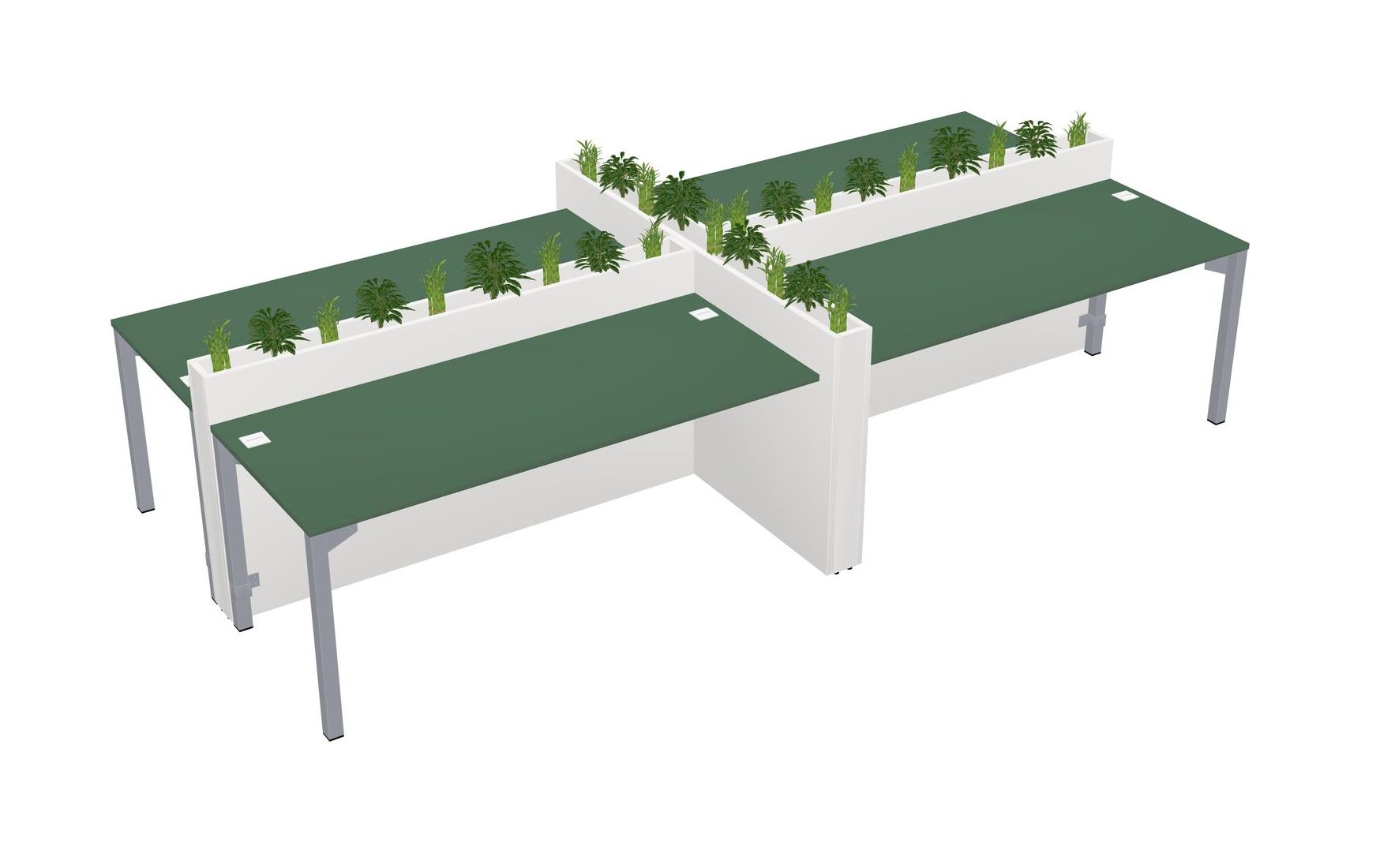 Green Rectangular Shared Office Desk For 4 Persons Let Nature Help Flourish Your Productivity The Base Comes With An Adjustable Shelf To Provide Space For Pots (Pots & Plants Sold Separately)