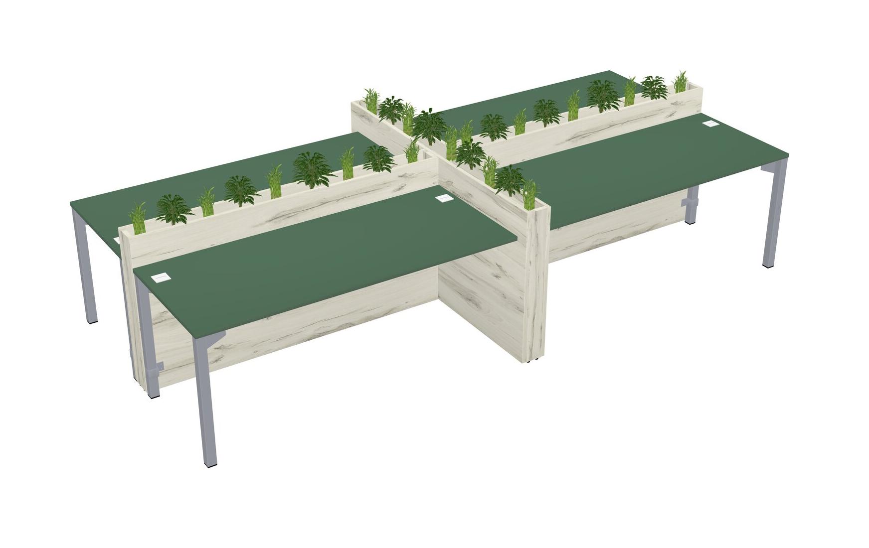 Green Rectangular Shared Office Desk For 4 Persons Let Nature Help Flourish Your Productivity The Base Comes With An Adjustable Shelf To Provide Space For Pots (Pots & Plants Sold Separately)