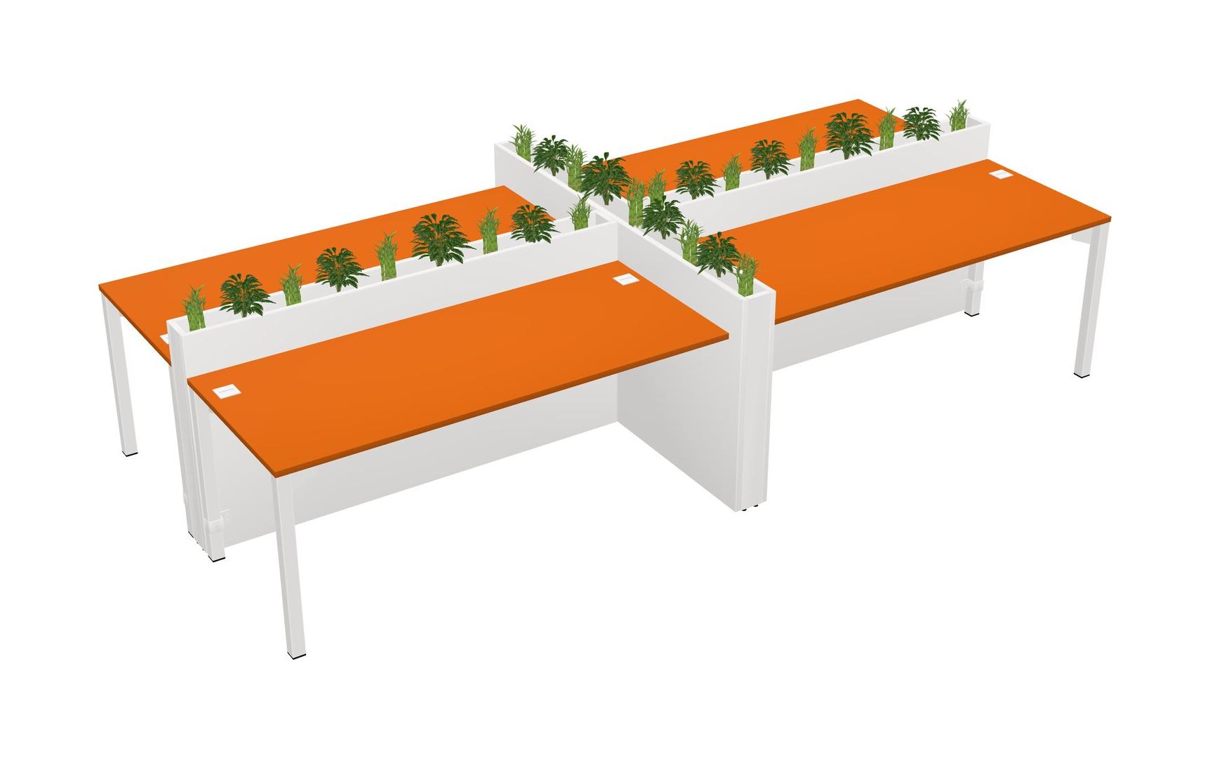 Orange Rectangular Shared Office Desk For 4 Persons Let Nature Help Flourish Your Productivity The Base Comes With An Adjustable Shelf To Provide Space For Pots (Pots & Plants Sold Separately)
