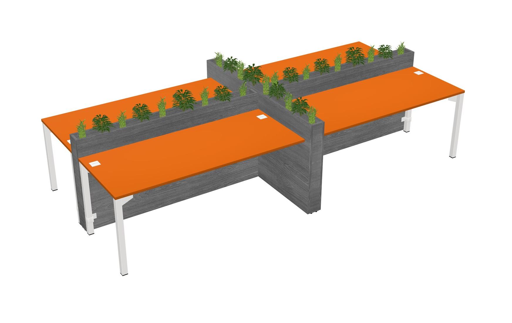 Orange Rectangular Shared Office Desk For 4 Persons Let Nature Help Flourish Your Productivity The Base Comes With An Adjustable Shelf To Provide Space For Pots (Pots & Plants Sold Separately)