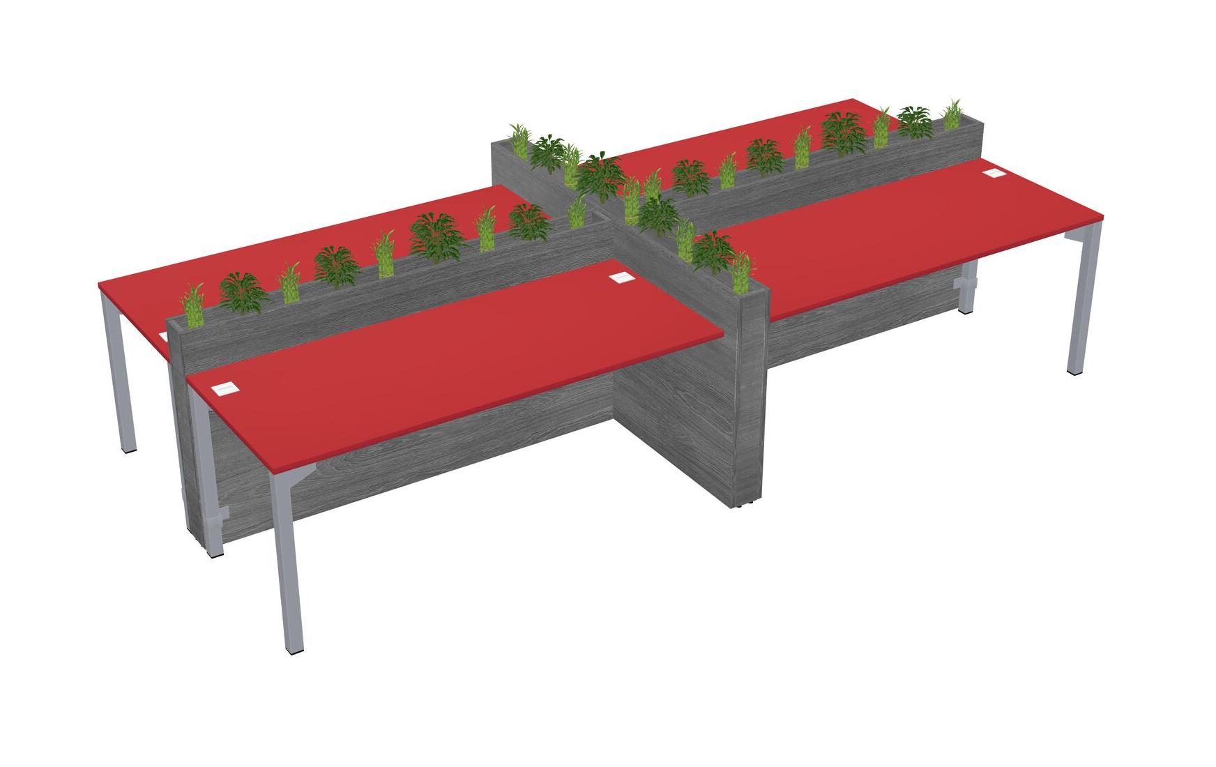 Prism Red Rectangular Shared Office Desk For 4 Persons Let Nature Help Flourish Your Productivity The Base Comes With An Adjustable Shelf To Provide Space For Pots (Pots & Plants Sold Separately)
