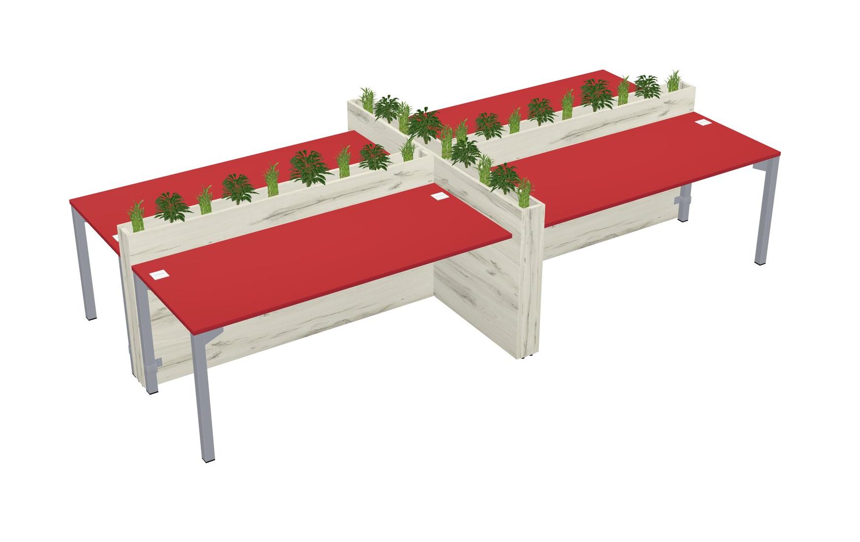 Prism Red Rectangular Shared Office Desk For 4 Persons Let Nature Help Flourish Your Productivity The Base Comes With An Adjustable Shelf To Provide Space For Pots (Pots & Plants Sold Separately)
