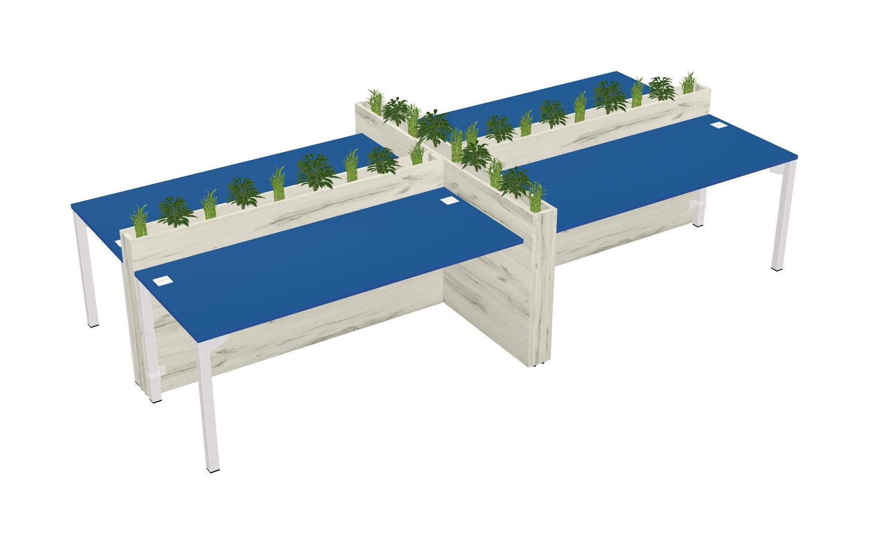Prism Blue Rectangular Shared Office Desk For 4 Persons Let Nature Help Flourish Your Productivity The Base Comes With An Adjustable Shelf To Provide Space For Pots (Pots & Plants Sold Separately)