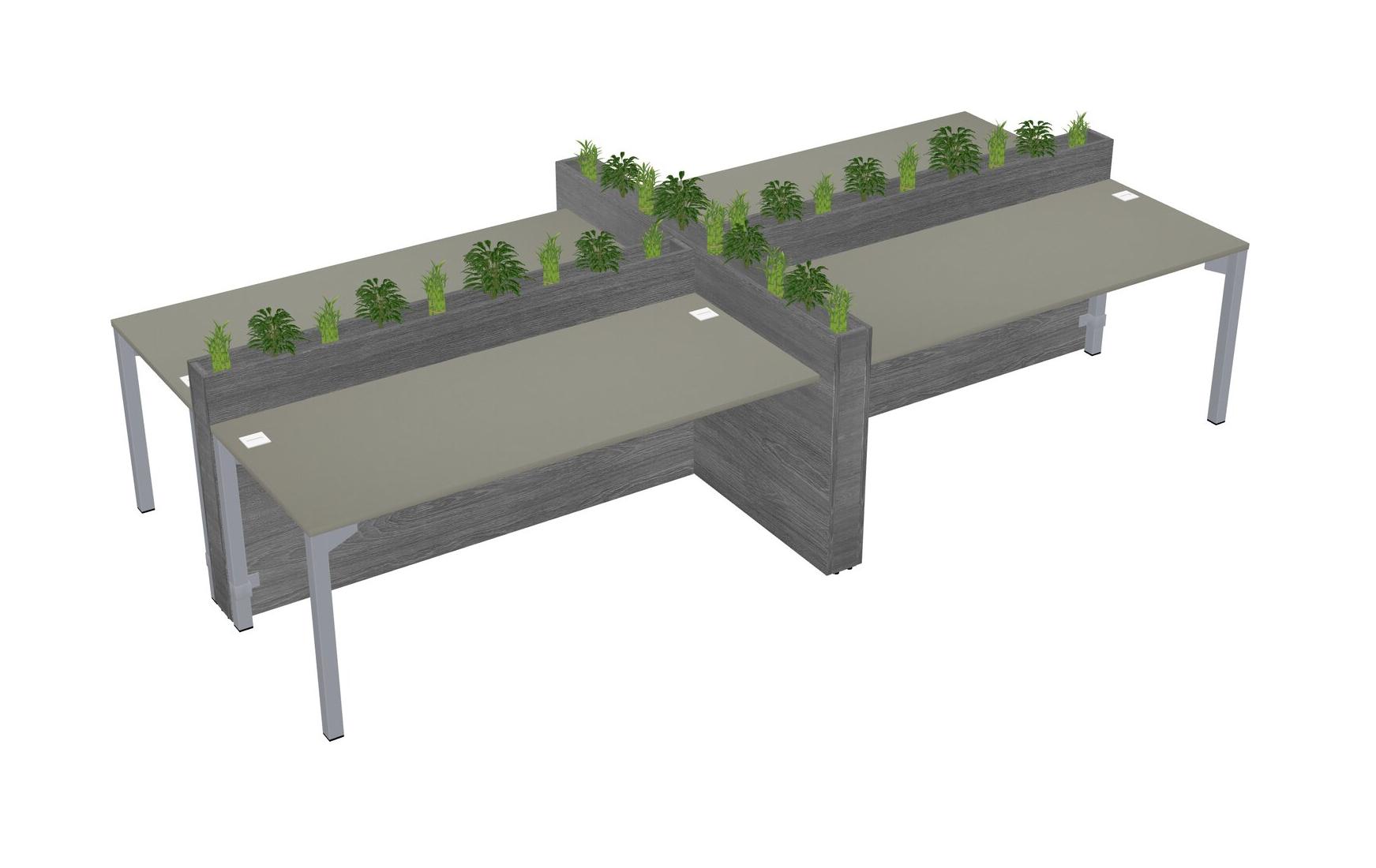 Grey Shadows Rectangular Shared Office Desk For 4 Persons Let Nature Help Flourish Your Productivity The Base Comes With An Adjustable Shelf To Provide Space For Pots (Pots & Plants Sold Separately)