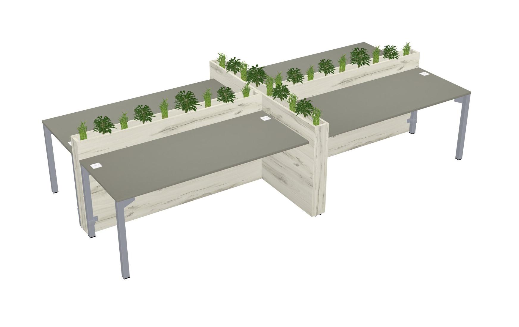 Grey Shadows Rectangular Shared Office Desk For 4 Persons Let Nature Help Flourish Your Productivity The Base Comes With An Adjustable Shelf To Provide Space For Pots (Pots & Plants Sold Separately)