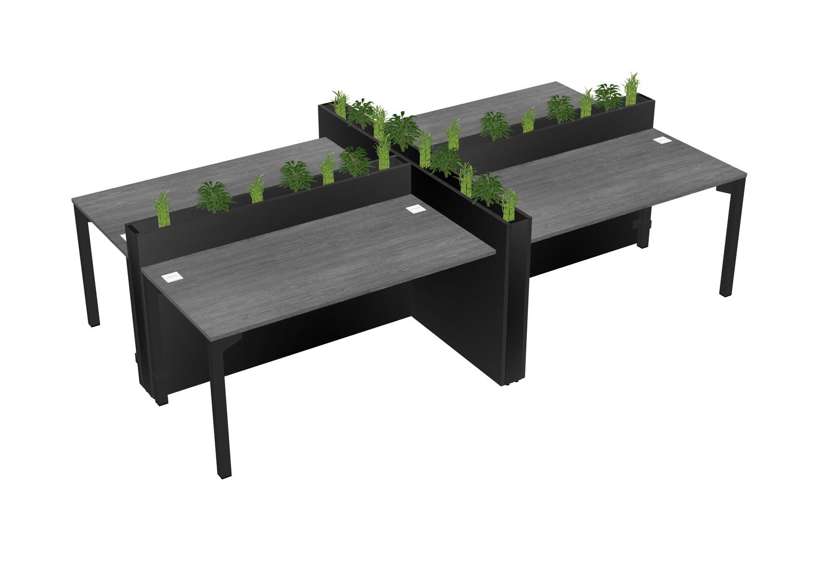 Grey Rectangular Shared Office Desk For 4 Persons Let Nature Help Flourish Your Productivity The Base Comes With An Adjustable Shelf To Provide Space For Pots (Pots & Plants Sold Separately)