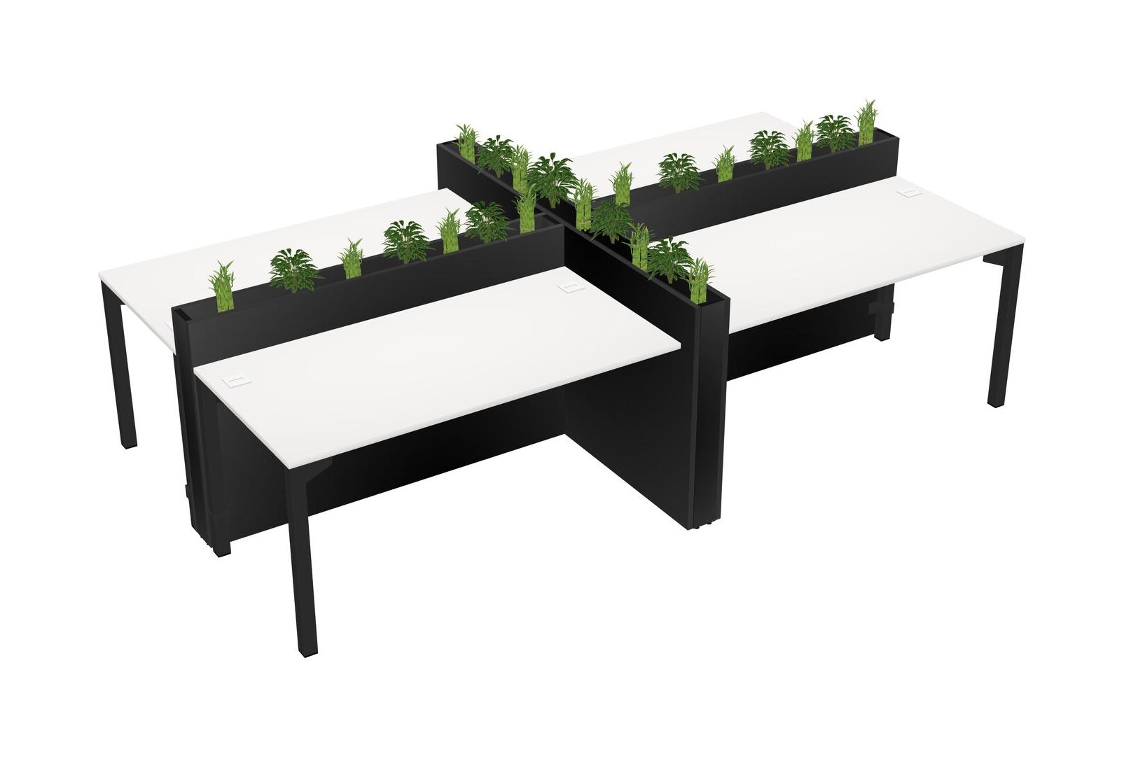 White Rectangular Shared Office Desk For 4 Persons Let Nature Help Flourish Your Productivity The Base Comes With An Adjustable Shelf To Provide Space For Pots (Pots & Plants Sold Separately)