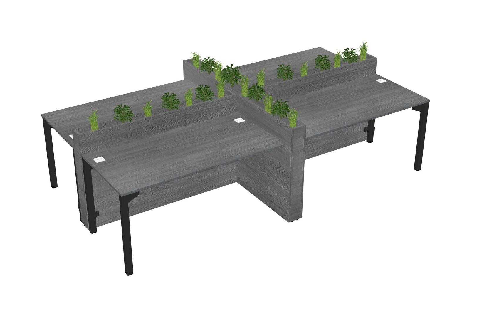 Grey Rectangular Shared Office Desk For 4 Persons Let Nature Help Flourish Your Productivity The Base Comes With An Adjustable Shelf To Provide Space For Pots (Pots & Plants Sold Separately)