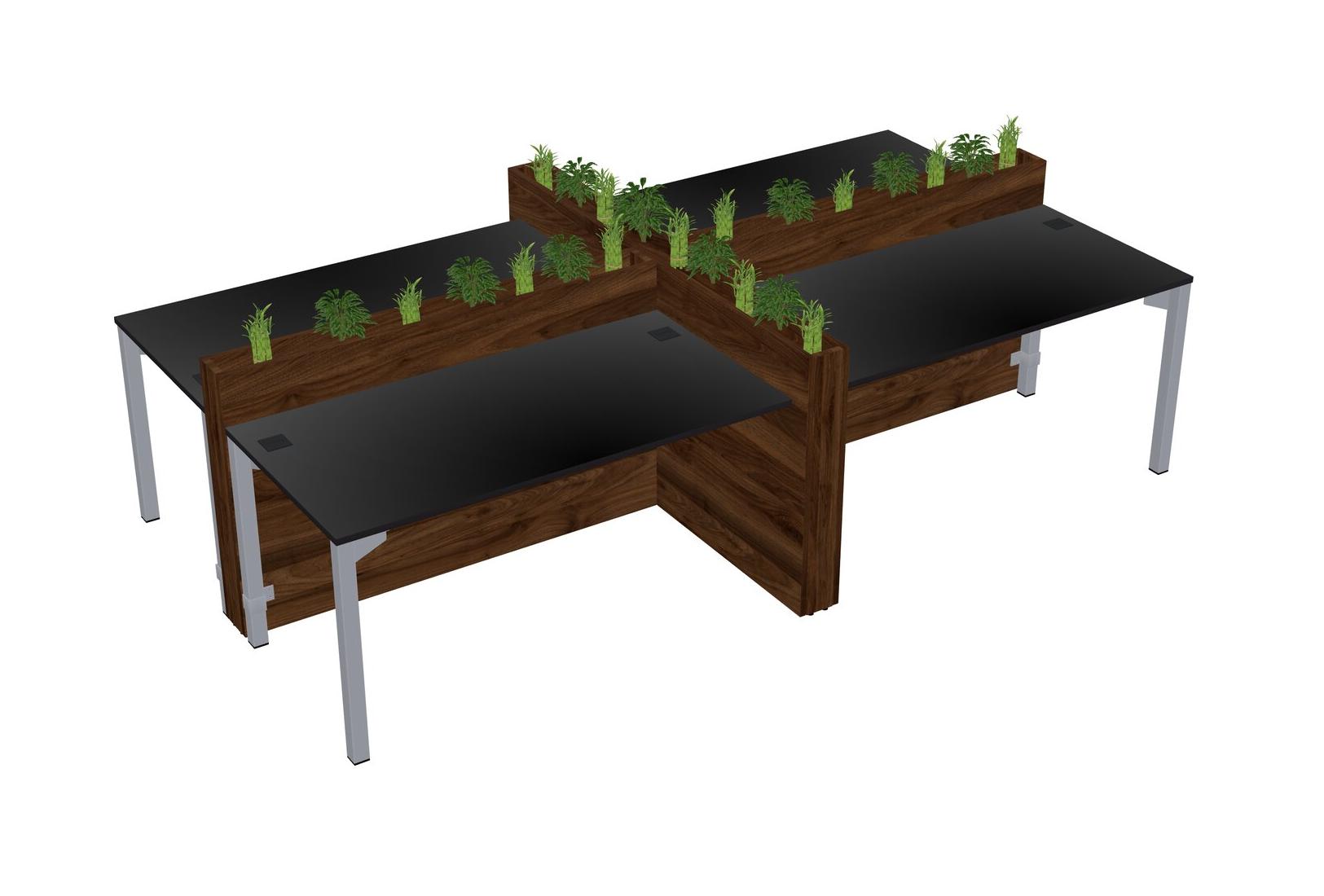 Black Rectangular Shared Office Desk For 4 Persons Let Nature Help Flourish Your Productivity The Base Comes With An Adjustable Shelf To Provide Space For Pots (Pots & Plants Sold Separately)