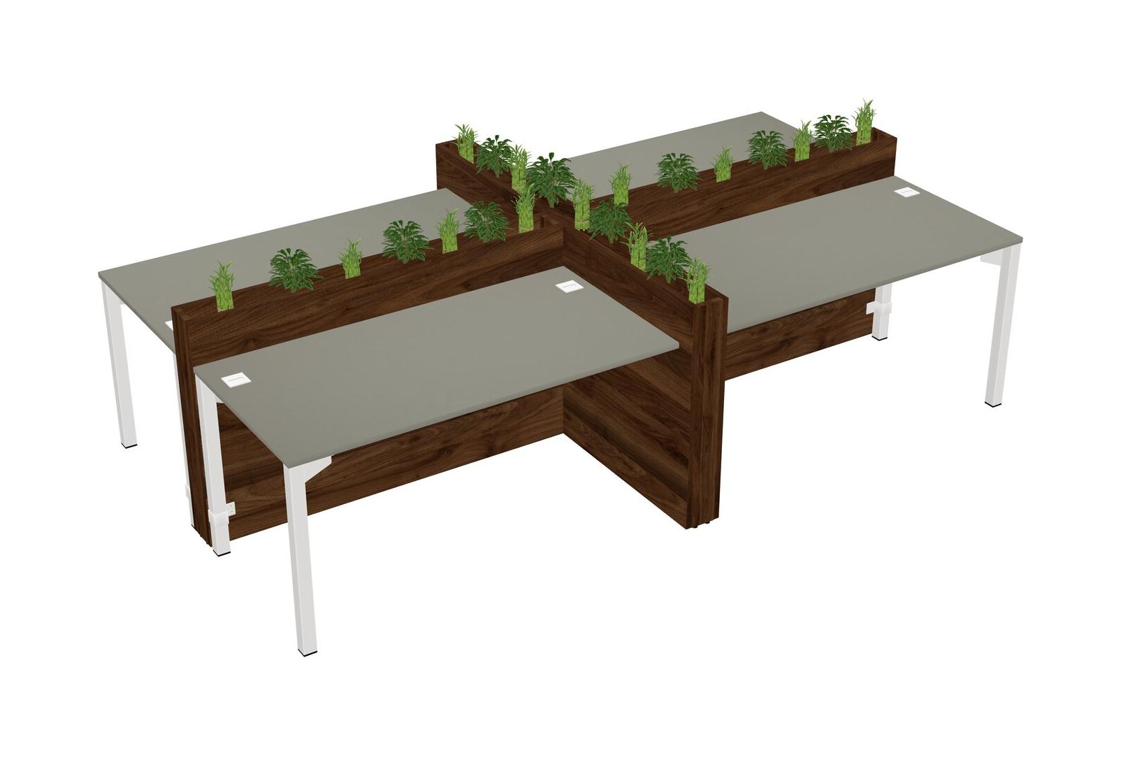 Grey Shadows Rectangular Shared Office Desk For 4 Persons Let Nature Help Flourish Your Productivity The Base Comes With An Adjustable Shelf To Provide Space For Pots (Pots & Plants Sold Separately)