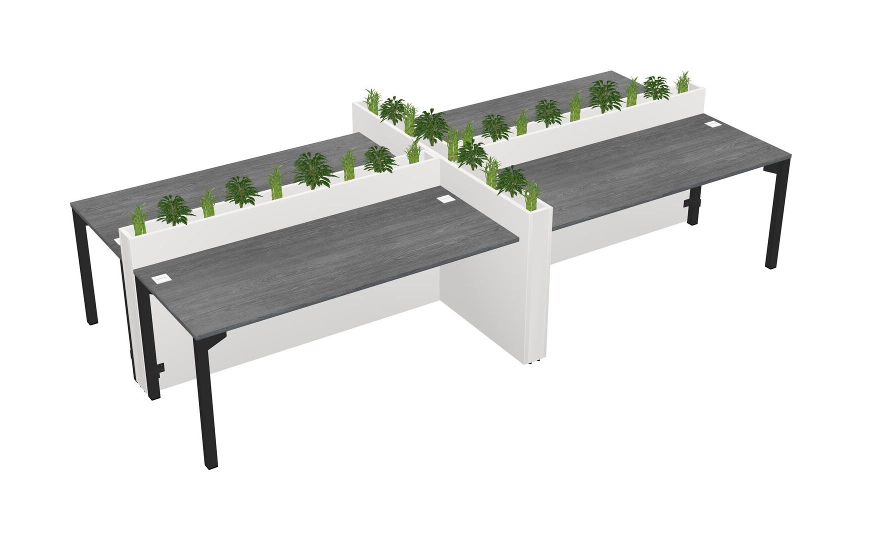 Grey Rectangular Shared Office Desk For 4 Persons Let Nature Help Flourish Your Productivity The Base Comes With An Adjustable Shelf To Provide Space For Pots (Pots & Plants Sold Separately)