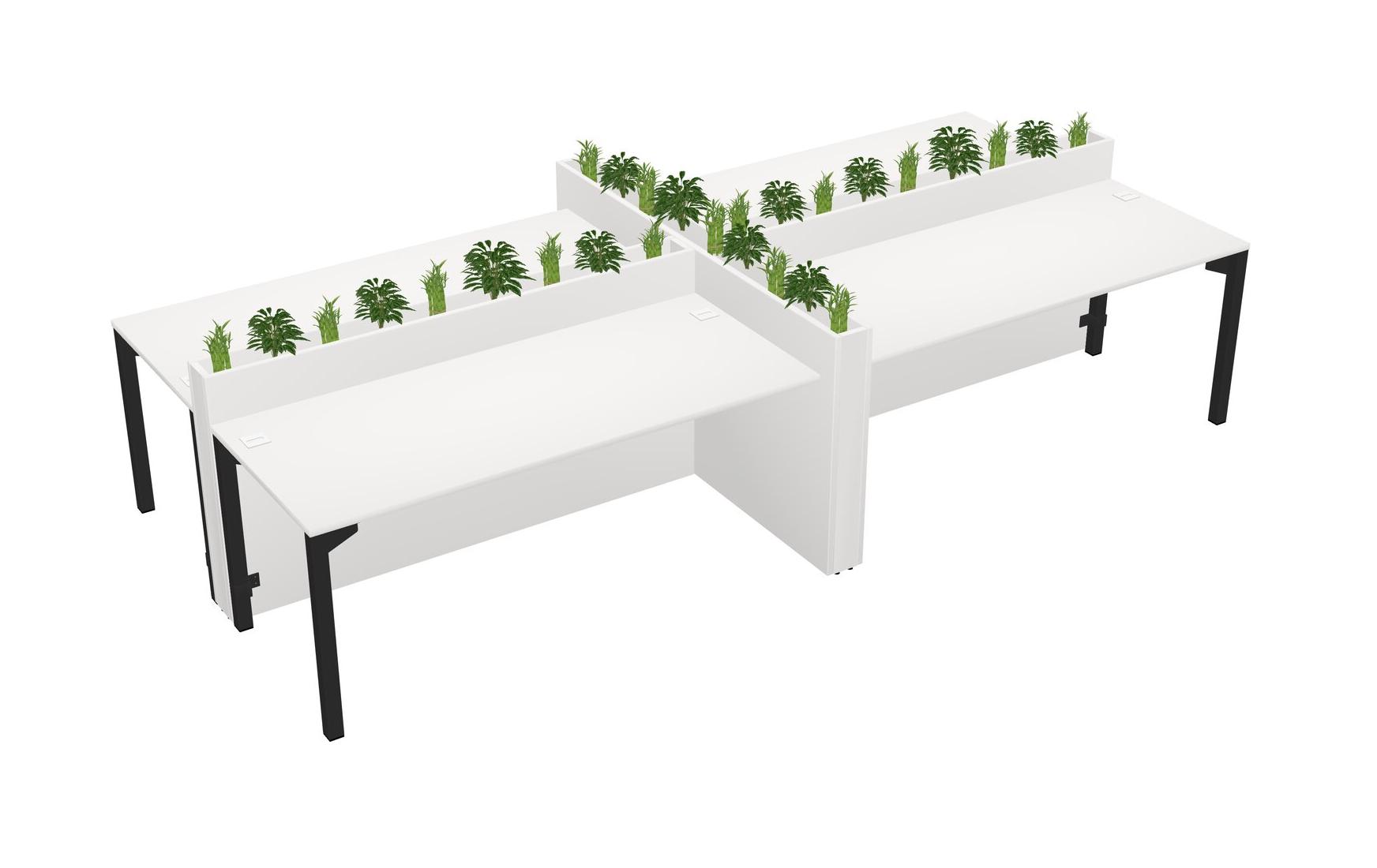 White Rectangular Shared Office Desk For 4 Persons Let Nature Help Flourish Your Productivity The Base Comes With An Adjustable Shelf To Provide Space For Pots (Pots & Plants Sold Separately)