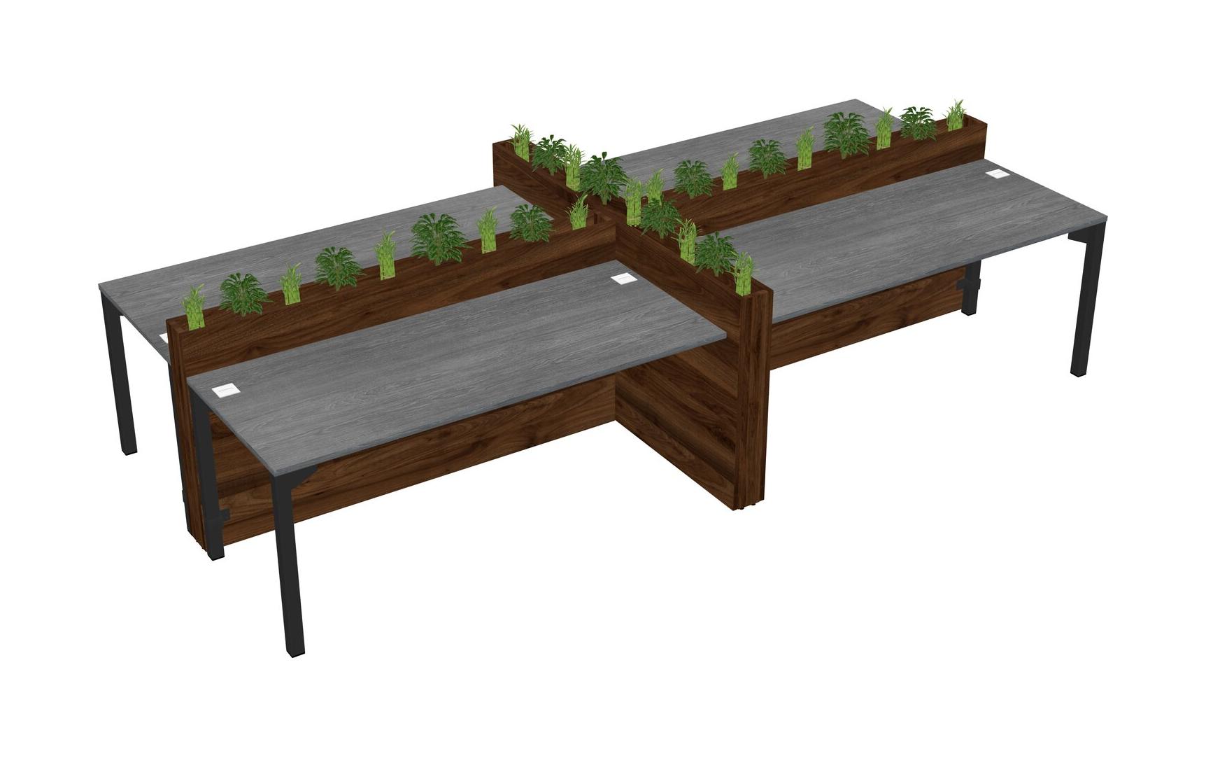 Grey Rectangular Shared Office Desk For 4 Persons Let Nature Help Flourish Your Productivity The Base Comes With An Adjustable Shelf To Provide Space For Pots (Pots & Plants Sold Separately)