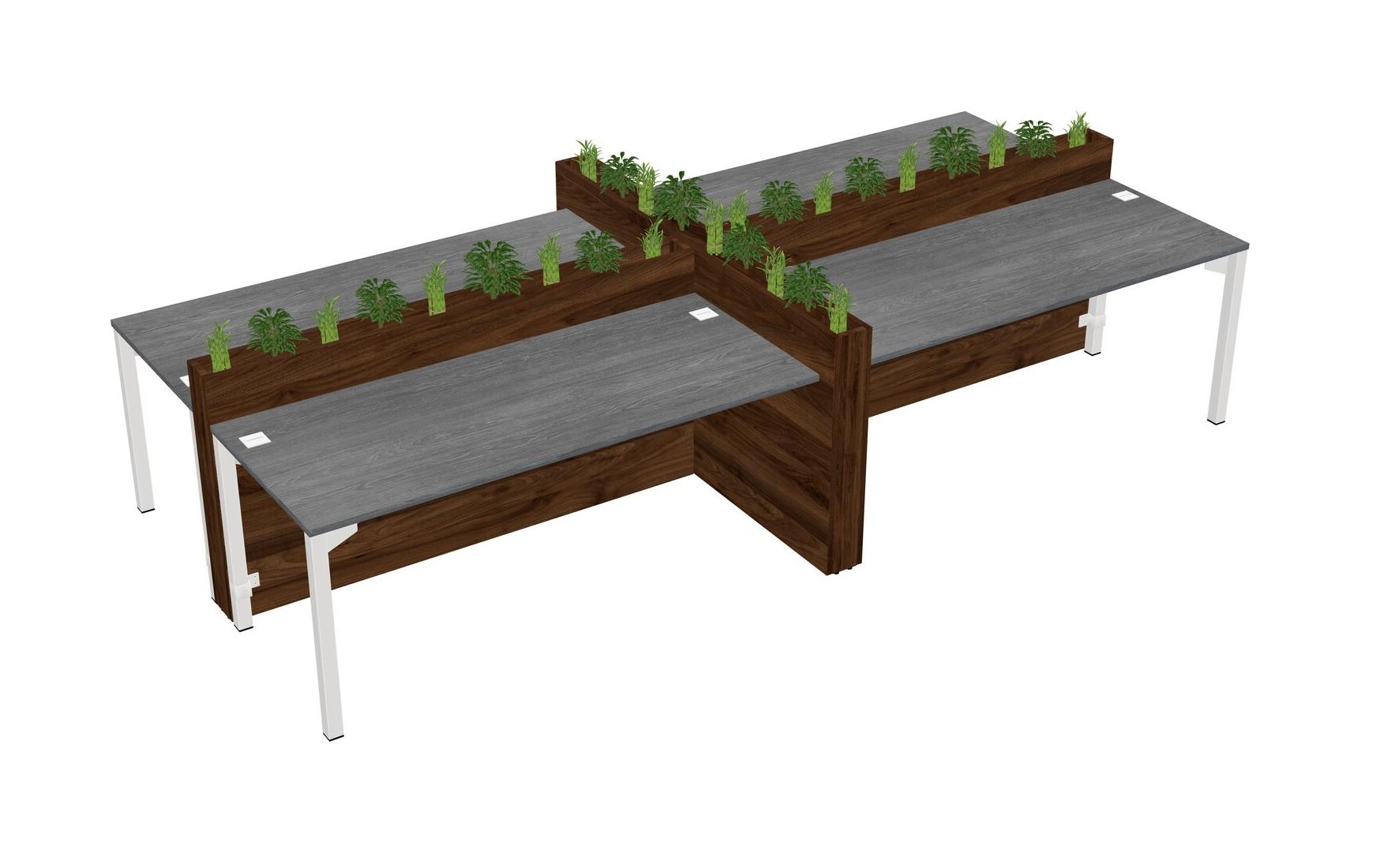 Grey Rectangular Shared Office Desk For 4 Persons Let Nature Help Flourish Your Productivity The Base Comes With An Adjustable Shelf To Provide Space For Pots (Pots & Plants Sold Separately)