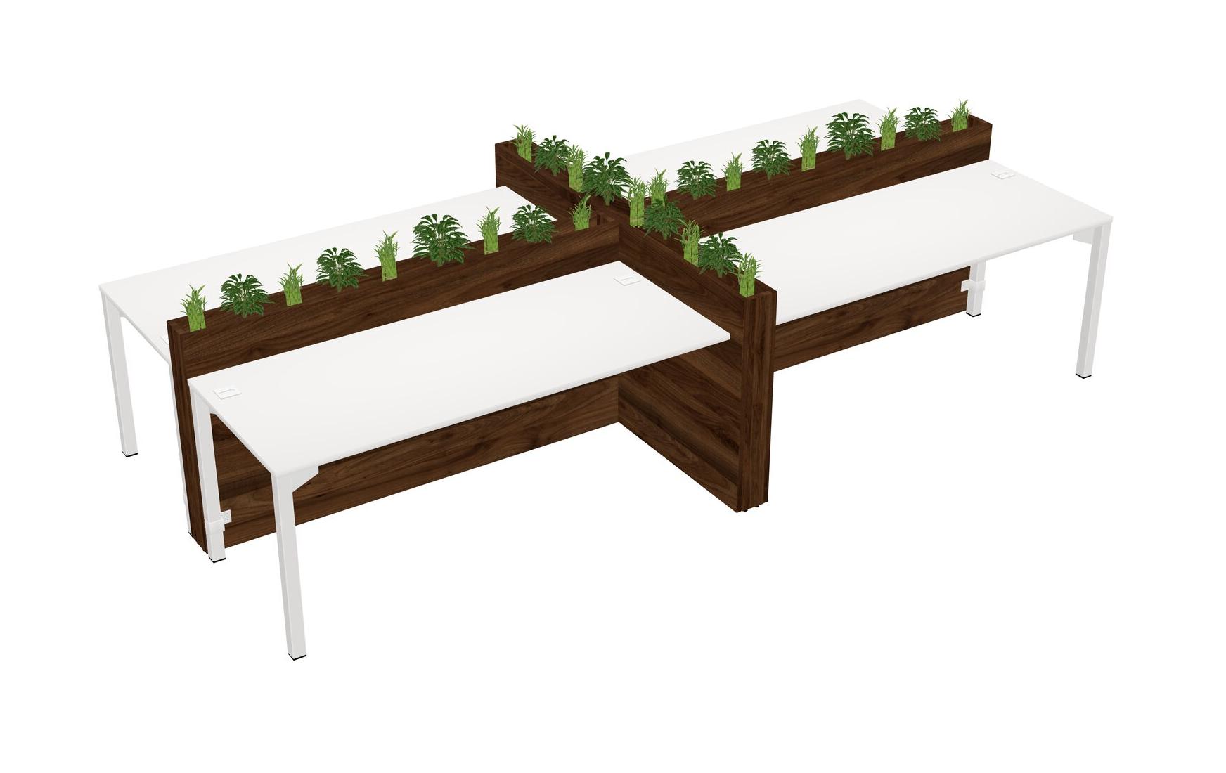 White Rectangular Shared Office Desk For 4 Persons Let Nature Help Flourish Your Productivity The Base Comes With An Adjustable Shelf To Provide Space For Pots (Pots & Plants Sold Separately)