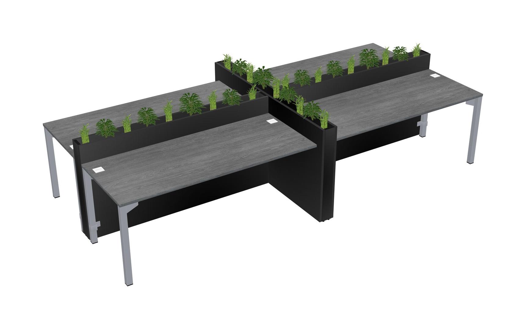 Grey Rectangular Shared Office Desk For 4 Persons Let Nature Help Flourish Your Productivity The Base Comes With An Adjustable Shelf To Provide Space For Pots (Pots & Plants Sold Separately)