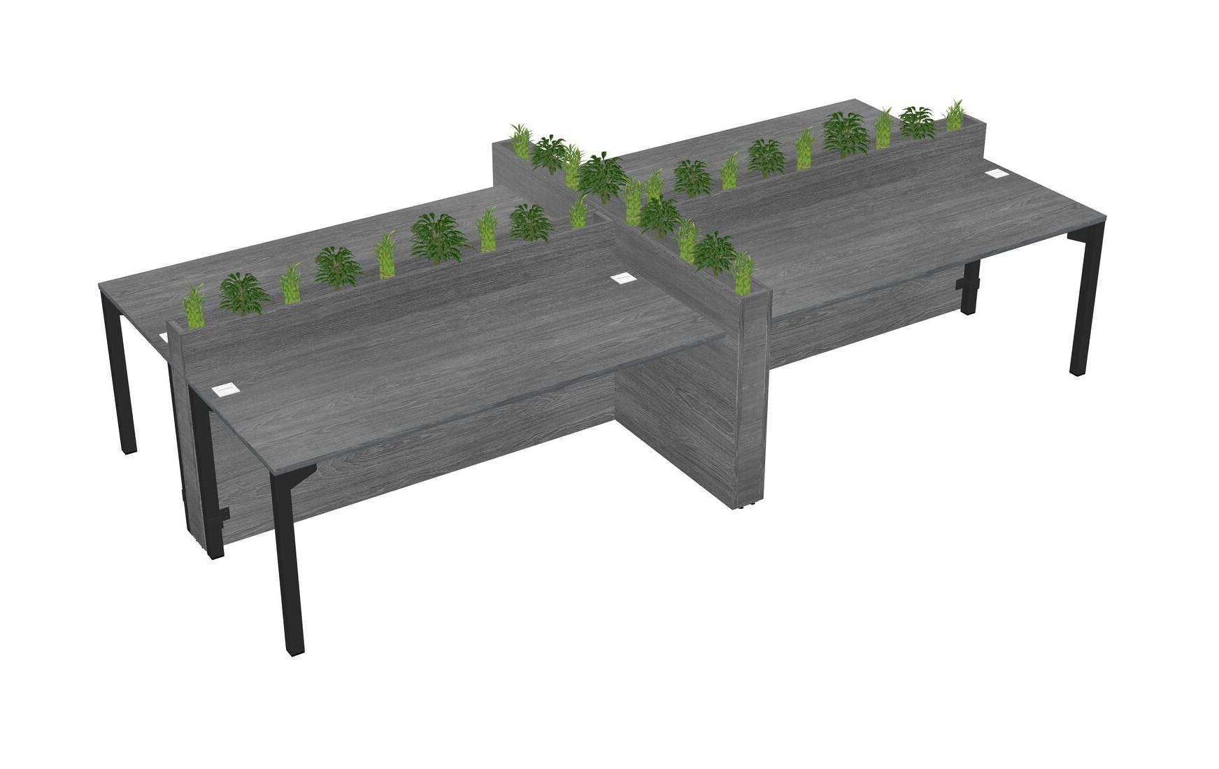 Grey Rectangular Shared Office Desk For 4 Persons Let Nature Help Flourish Your Productivity The Base Comes With An Adjustable Shelf To Provide Space For Pots (Pots & Plants Sold Separately)