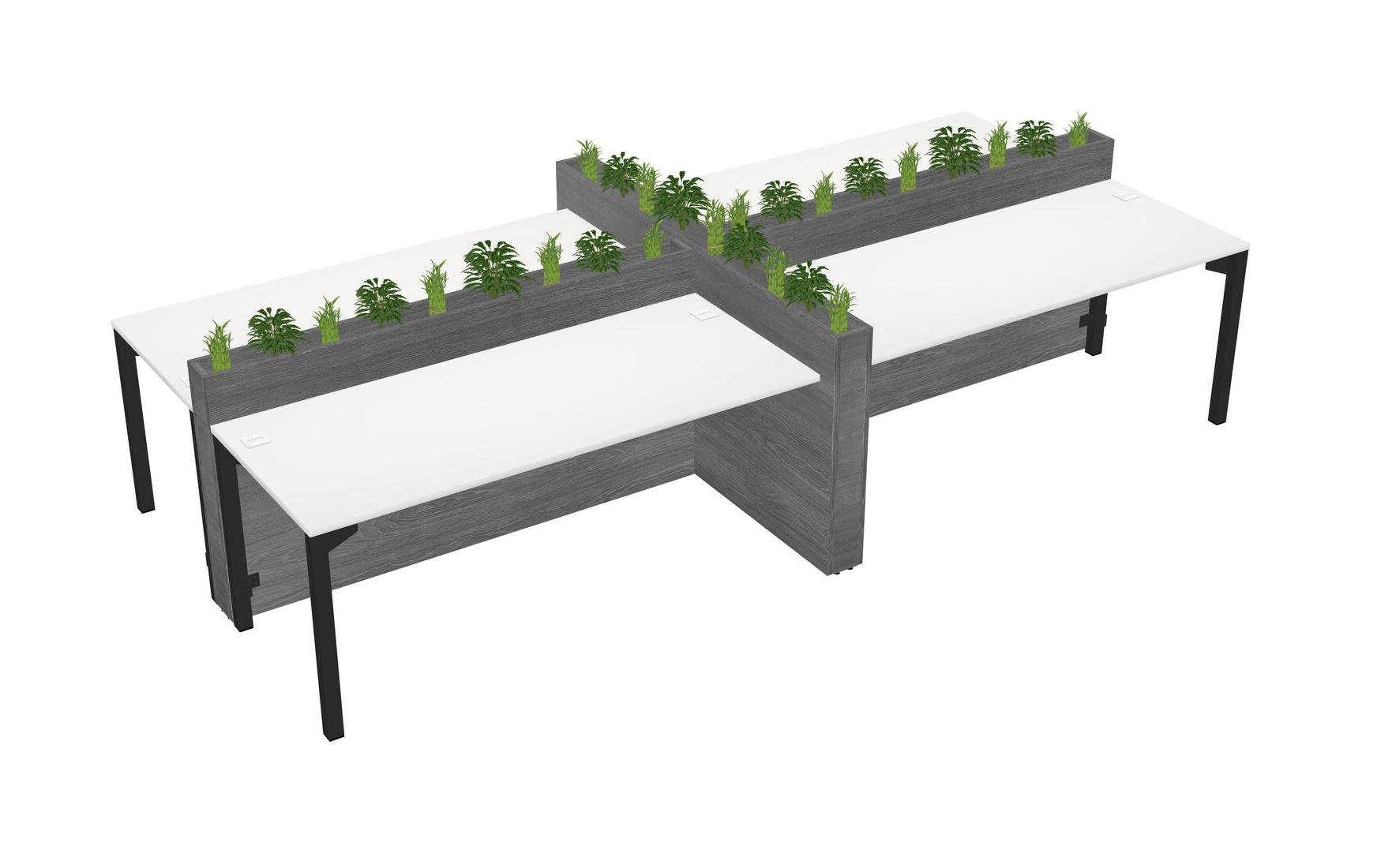 White Rectangular Shared Office Desk For 4 Persons Let Nature Help Flourish Your Productivity The Base Comes With An Adjustable Shelf To Provide Space For Pots (Pots & Plants Sold Separately)