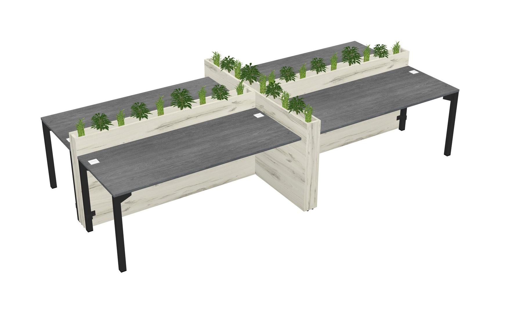 Grey Rectangular Shared Office Desk For 4 Persons Let Nature Help Flourish Your Productivity The Base Comes With An Adjustable Shelf To Provide Space For Pots (Pots & Plants Sold Separately)