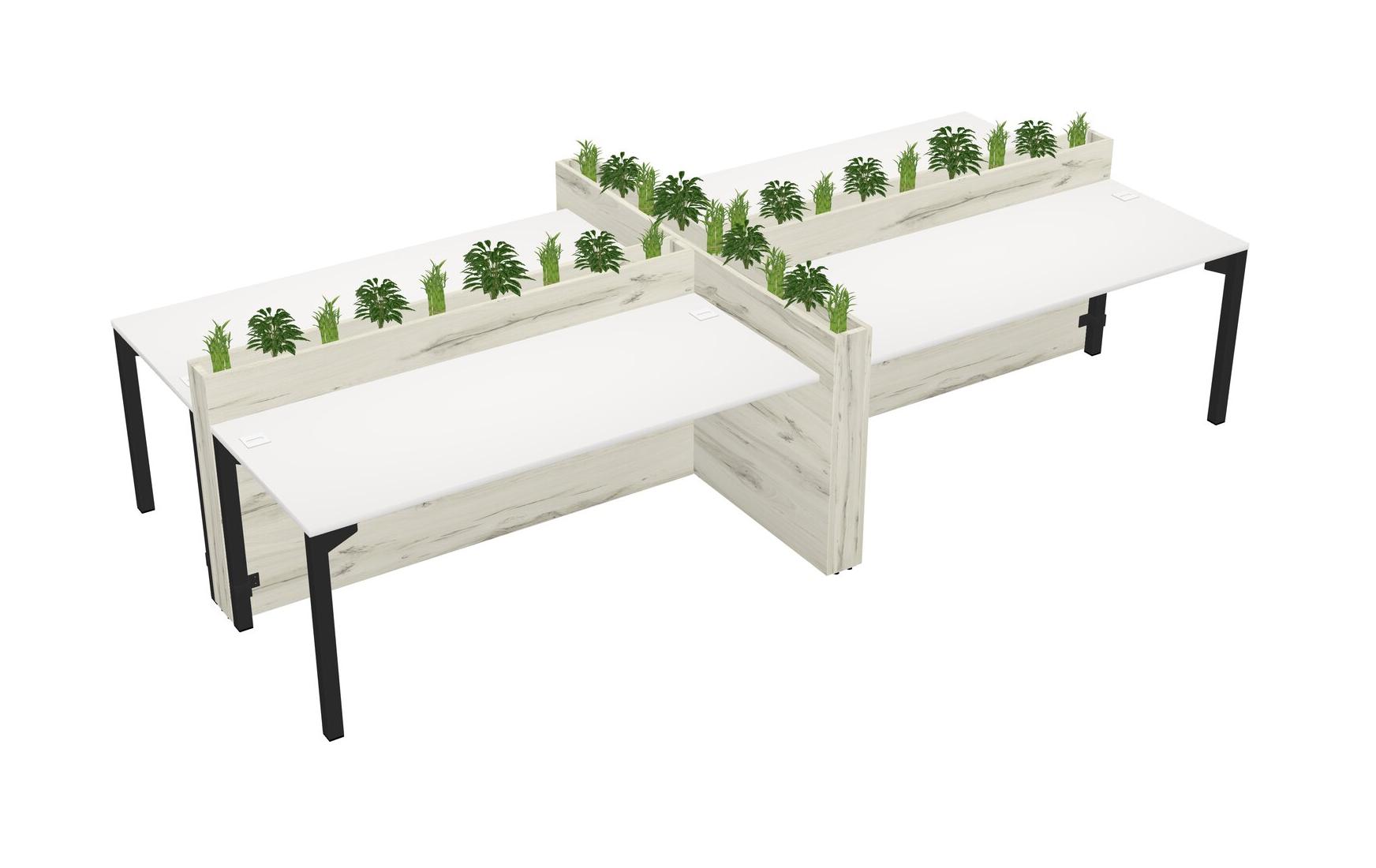 White Rectangular Shared Office Desk For 4 Persons Let Nature Help Flourish Your Productivity The Base Comes With An Adjustable Shelf To Provide Space For Pots (Pots & Plants Sold Separately)