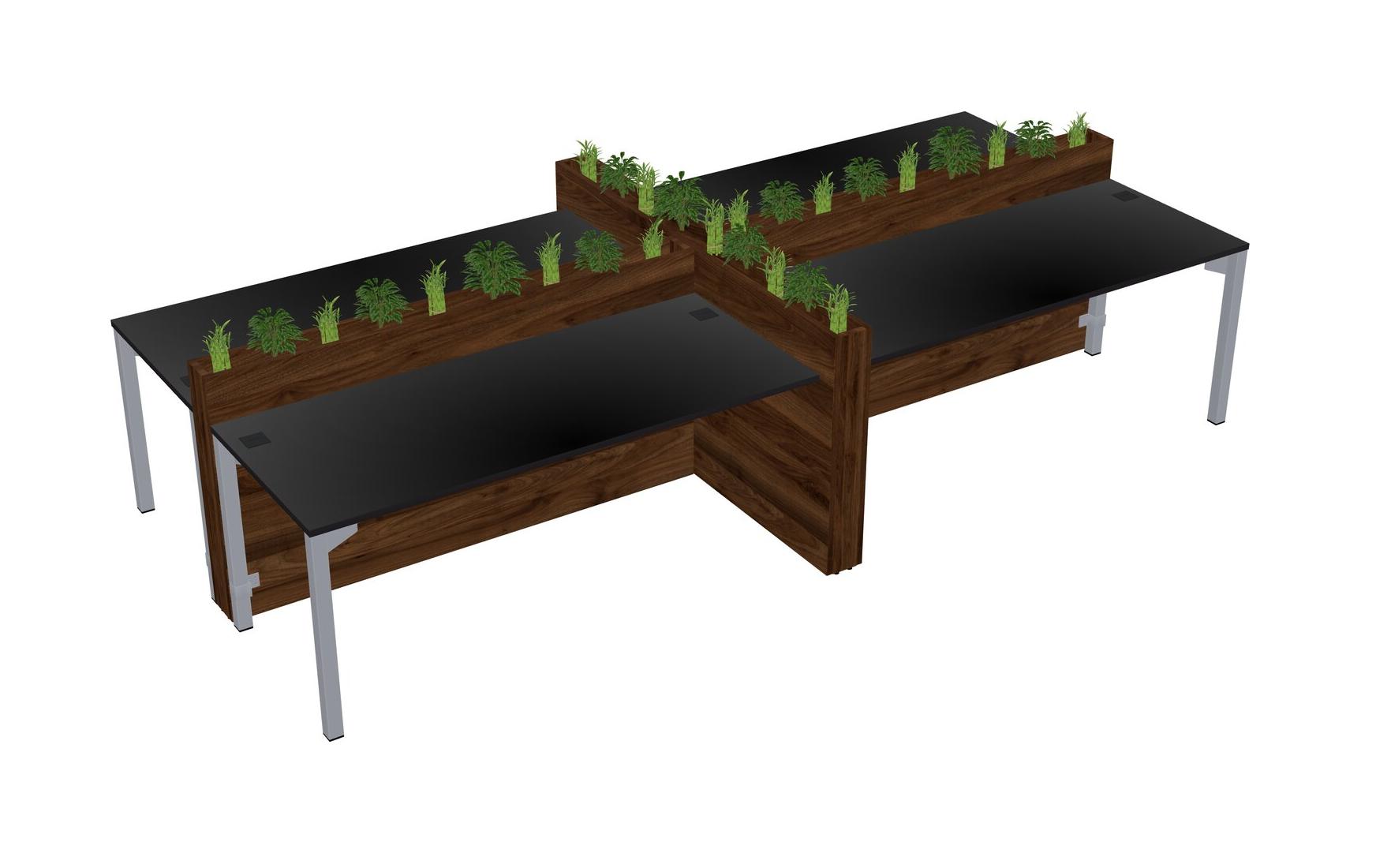 Black Rectangular Shared Office Desk For 4 Persons Let Nature Help Flourish Your Productivity The Base Comes With An Adjustable Shelf To Provide Space For Pots (Pots & Plants Sold Separately)