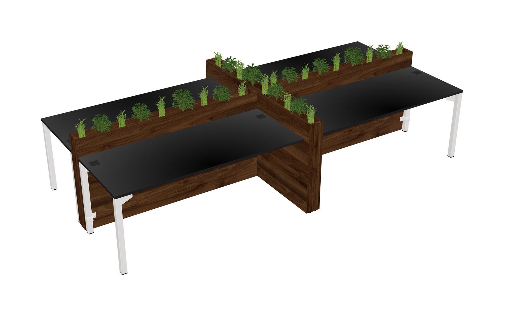 Black Rectangular Shared Office Desk For 4 Persons Let Nature Help Flourish Your Productivity The Base Comes With An Adjustable Shelf To Provide Space For Pots (Pots & Plants Sold Separately)