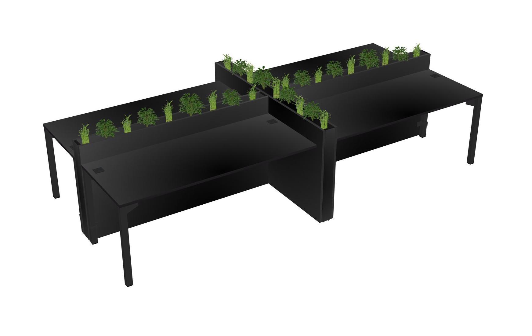Black Rectangular Shared Office Desk For 4 Persons Let Nature Help Flourish Your Productivity The Base Comes With An Adjustable Shelf To Provide Space For Pots (Pots & Plants Sold Separately)