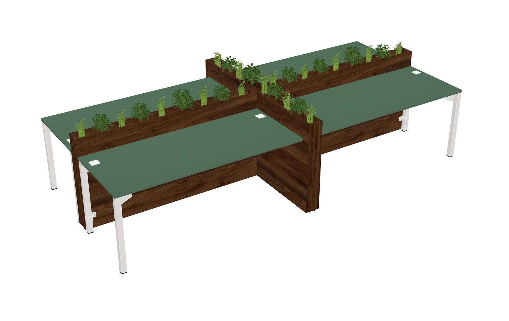 Green Rectangular Shared Office Desk For 4 Persons Let Nature Help Flourish Your Productivity The Base Comes With An Adjustable Shelf To Provide Space For Pots (Pots & Plants Sold Separately)