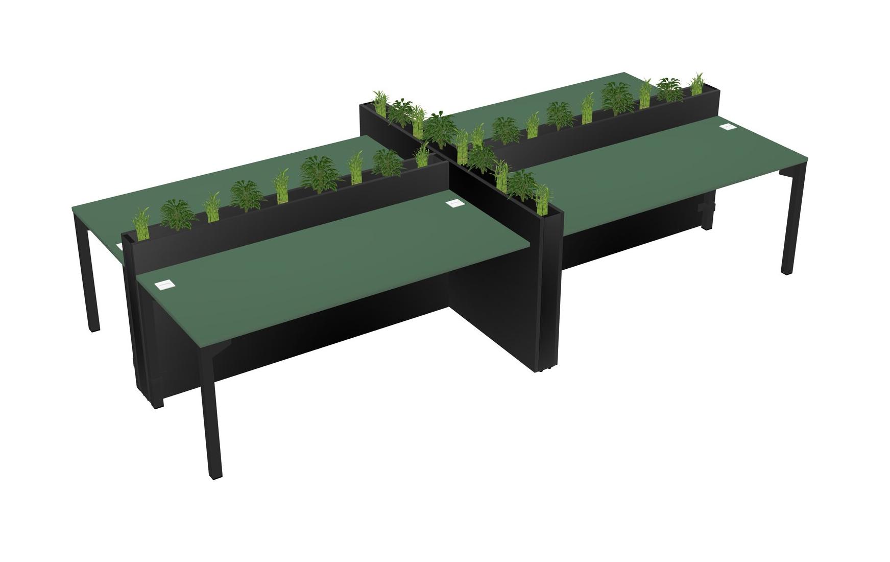 Green Rectangular Shared Office Desk For 4 Persons Let Nature Help Flourish Your Productivity The Base Comes With An Adjustable Shelf To Provide Space For Pots (Pots & Plants Sold Separately)