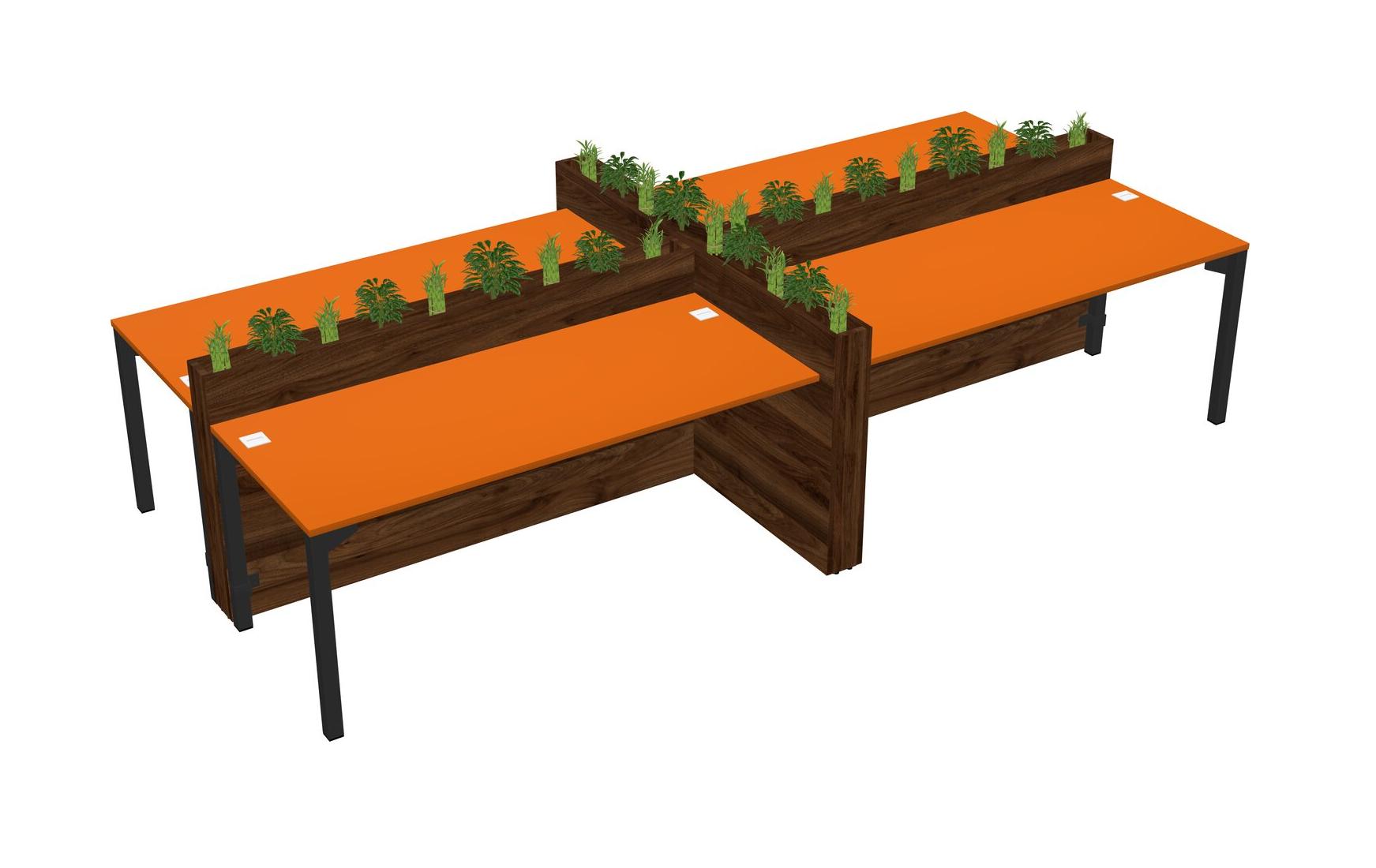 Orange Rectangular Shared Office Desk For 4 Persons Let Nature Help Flourish Your Productivity The Base Comes With An Adjustable Shelf To Provide Space For Pots (Pots & Plants Sold Separately)