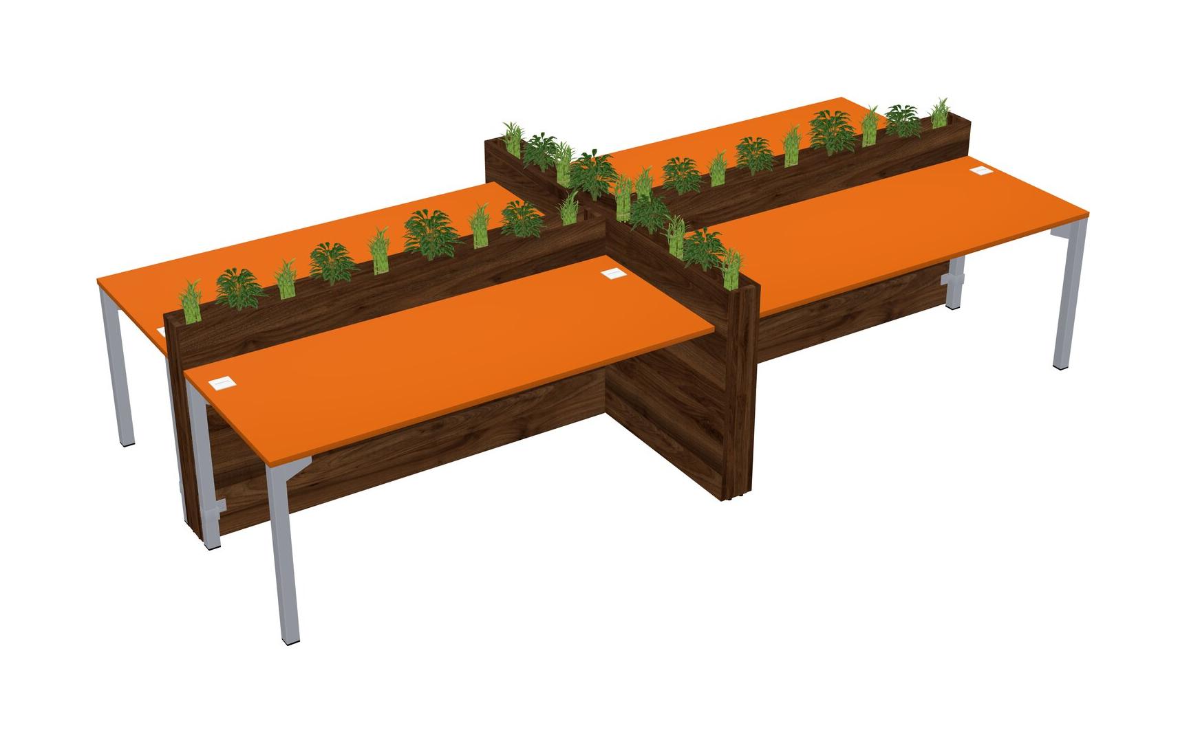 Orange Rectangular Shared Office Desk For 4 Persons Let Nature Help Flourish Your Productivity The Base Comes With An Adjustable Shelf To Provide Space For Pots (Pots & Plants Sold Separately)