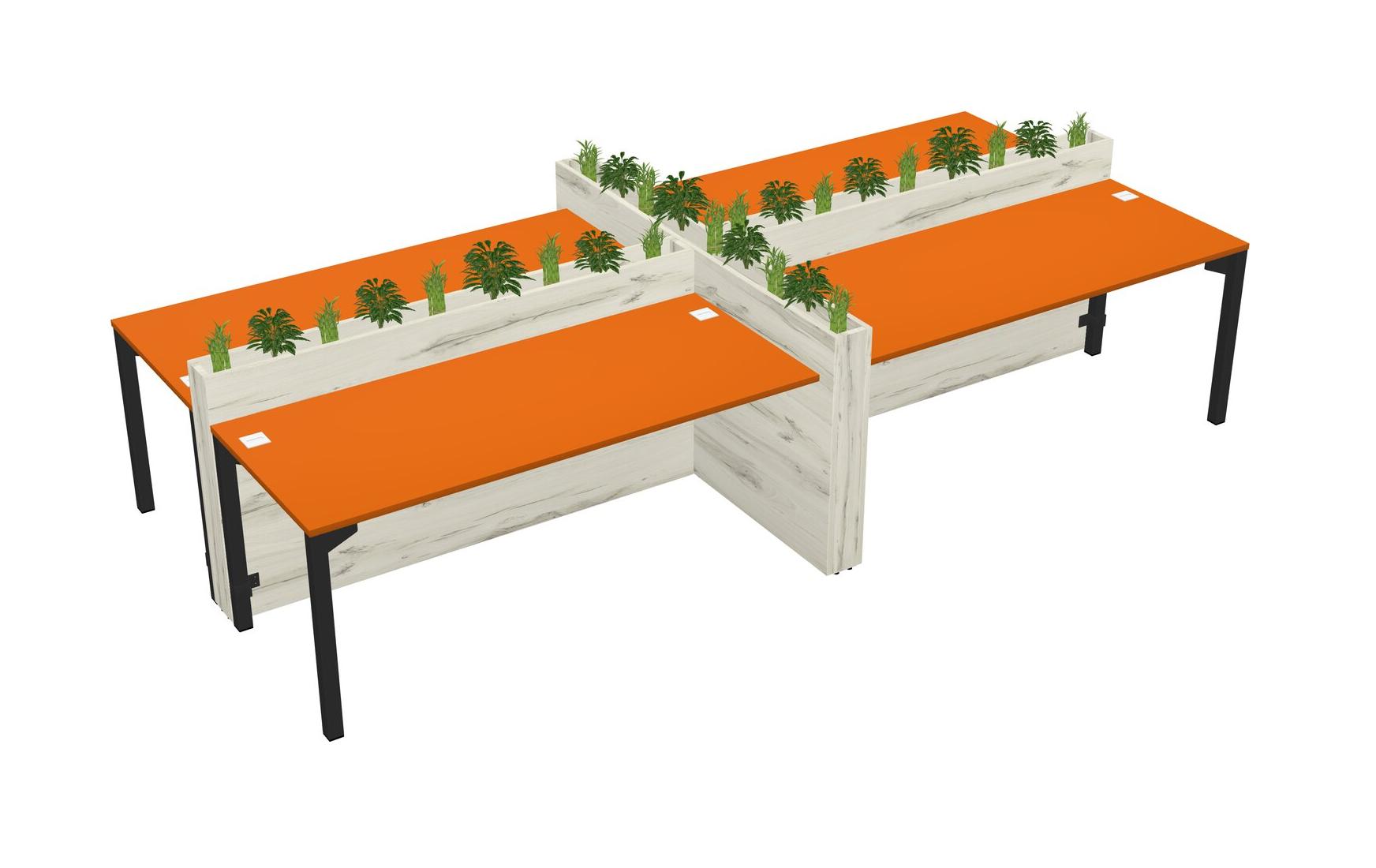 Orange Rectangular Shared Office Desk For 4 Persons Let Nature Help Flourish Your Productivity The Base Comes With An Adjustable Shelf To Provide Space For Pots (Pots & Plants Sold Separately)