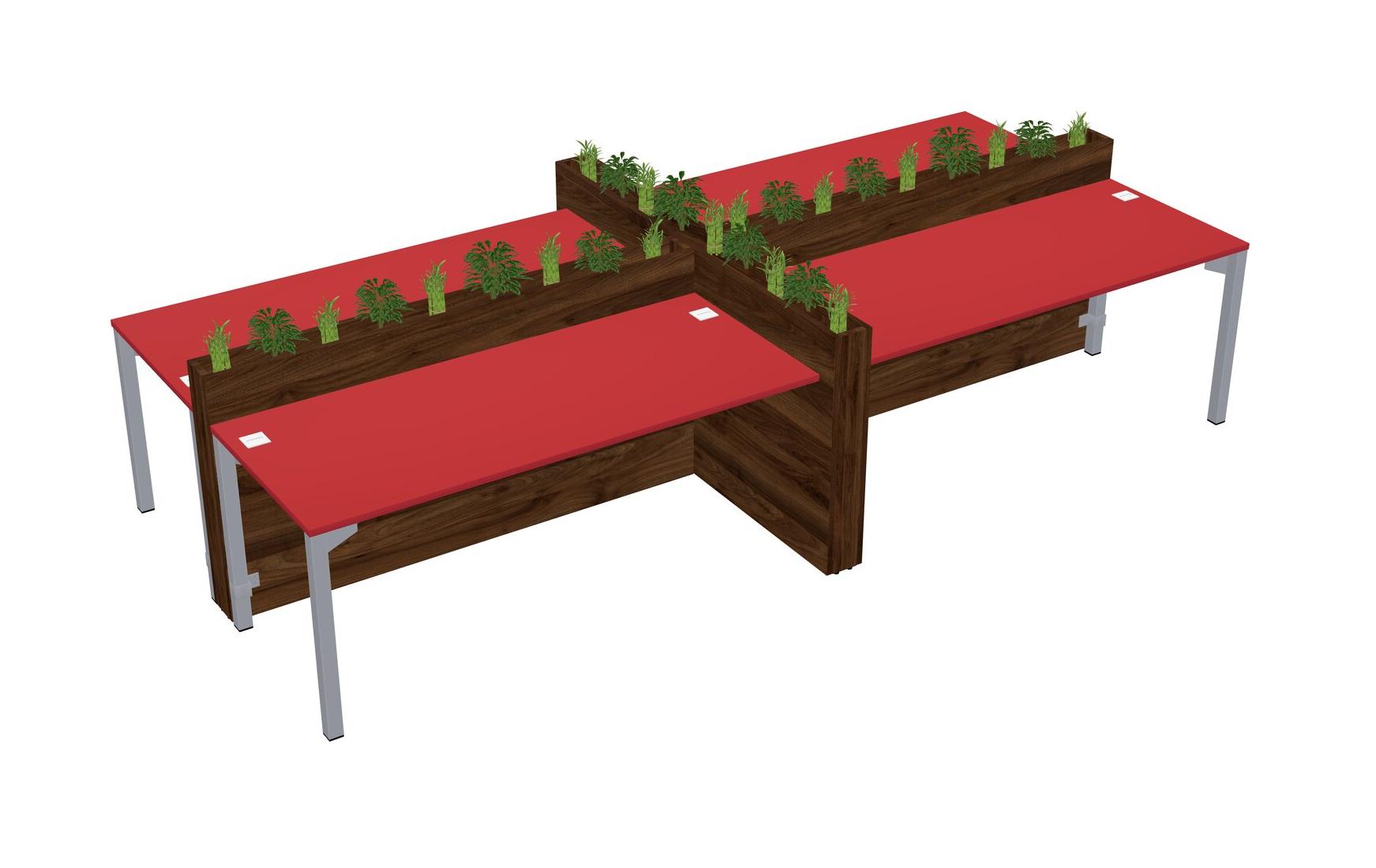 Prism Red Rectangular Shared Office Desk For 4 Persons Let Nature Help Flourish Your Productivity The Base Comes With An Adjustable Shelf To Provide Space For Pots (Pots & Plants Sold Separately)