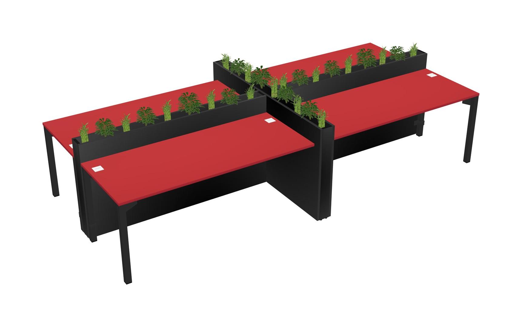 Prism Red Rectangular Shared Office Desk For 4 Persons Let Nature Help Flourish Your Productivity The Base Comes With An Adjustable Shelf To Provide Space For Pots (Pots & Plants Sold Separately)
