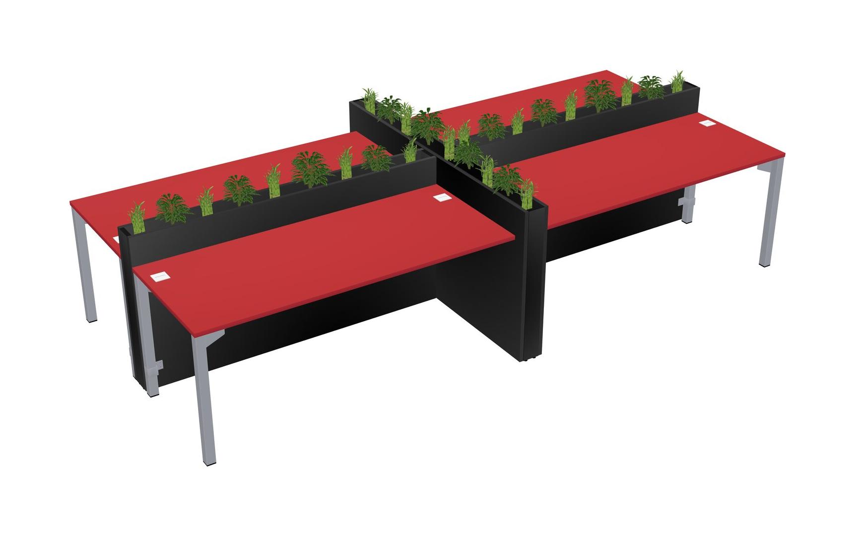 Prism Red Rectangular Shared Office Desk For 4 Persons Let Nature Help Flourish Your Productivity The Base Comes With An Adjustable Shelf To Provide Space For Pots (Pots & Plants Sold Separately)