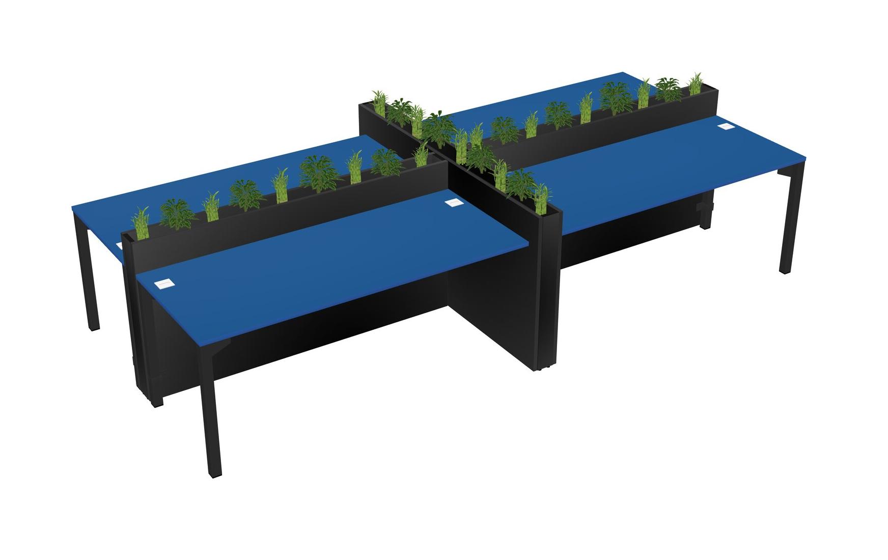 Prism Blue Rectangular Shared Office Desk For 4 Persons Let Nature Help Flourish Your Productivity The Base Comes With An Adjustable Shelf To Provide Space For Pots (Pots & Plants Sold Separately)