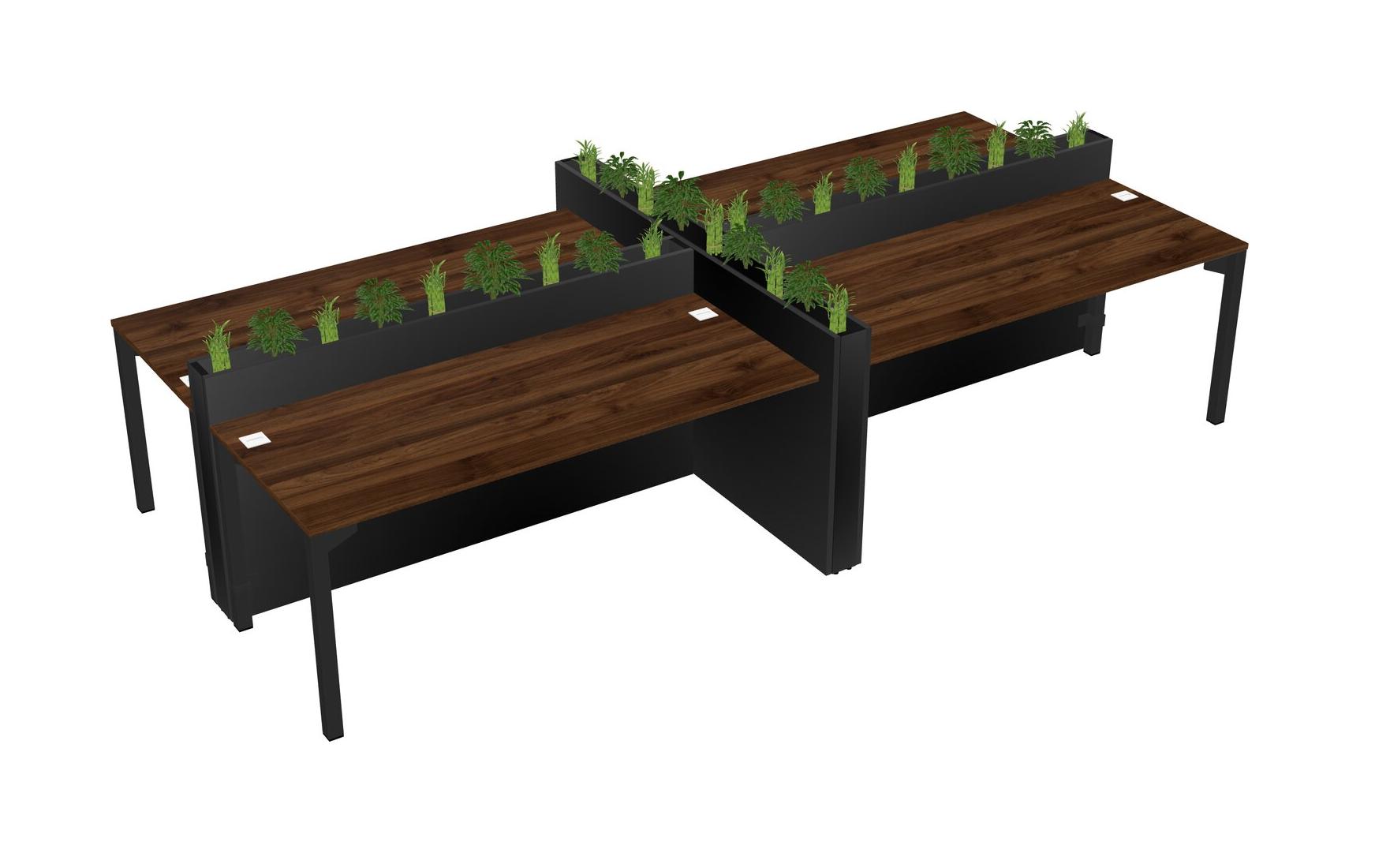 Columbia Walnut Rectangular Shared Office Desk For 4 Persons Let Nature Help Flourish Your Productivity The Base Comes With An Adjustable Shelf To Provide Space For Pots (Pots & Plants Sold Separately)