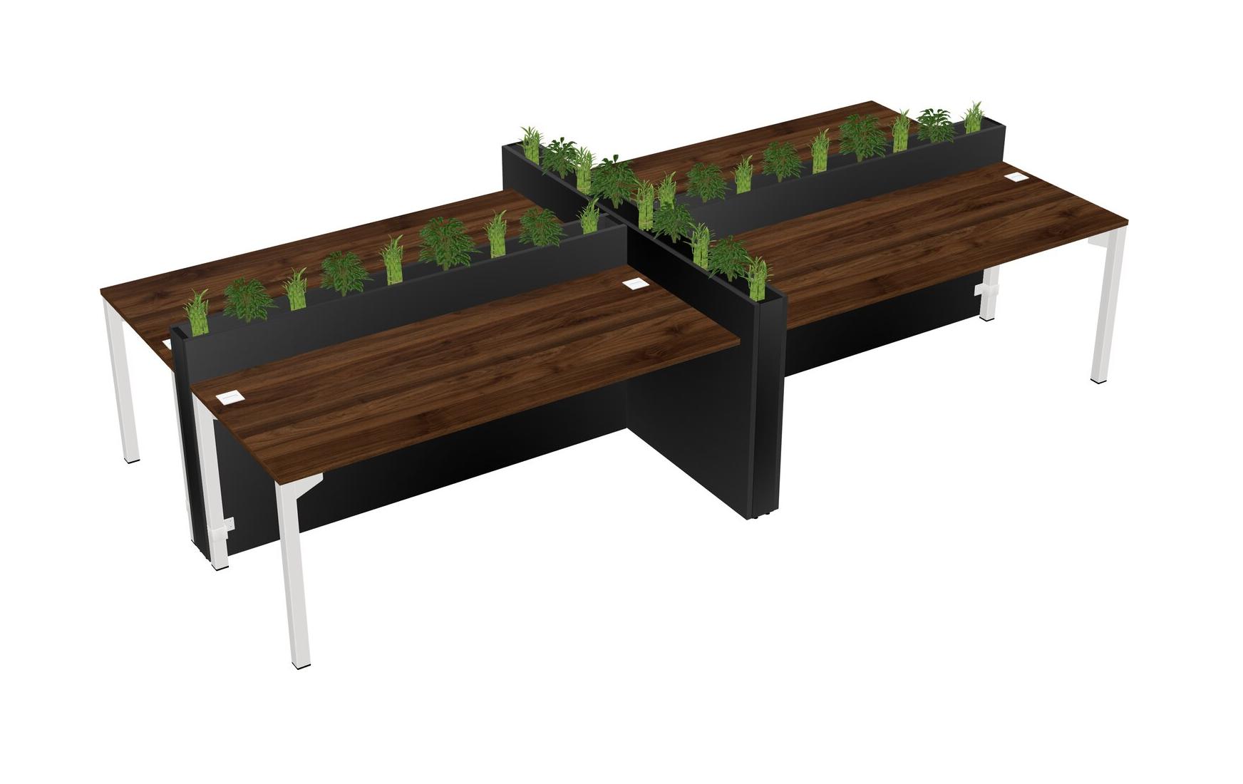 Columbia Walnut Rectangular Shared Office Desk For 4 Persons Let Nature Help Flourish Your Productivity The Base Comes With An Adjustable Shelf To Provide Space For Pots (Pots & Plants Sold Separately)
