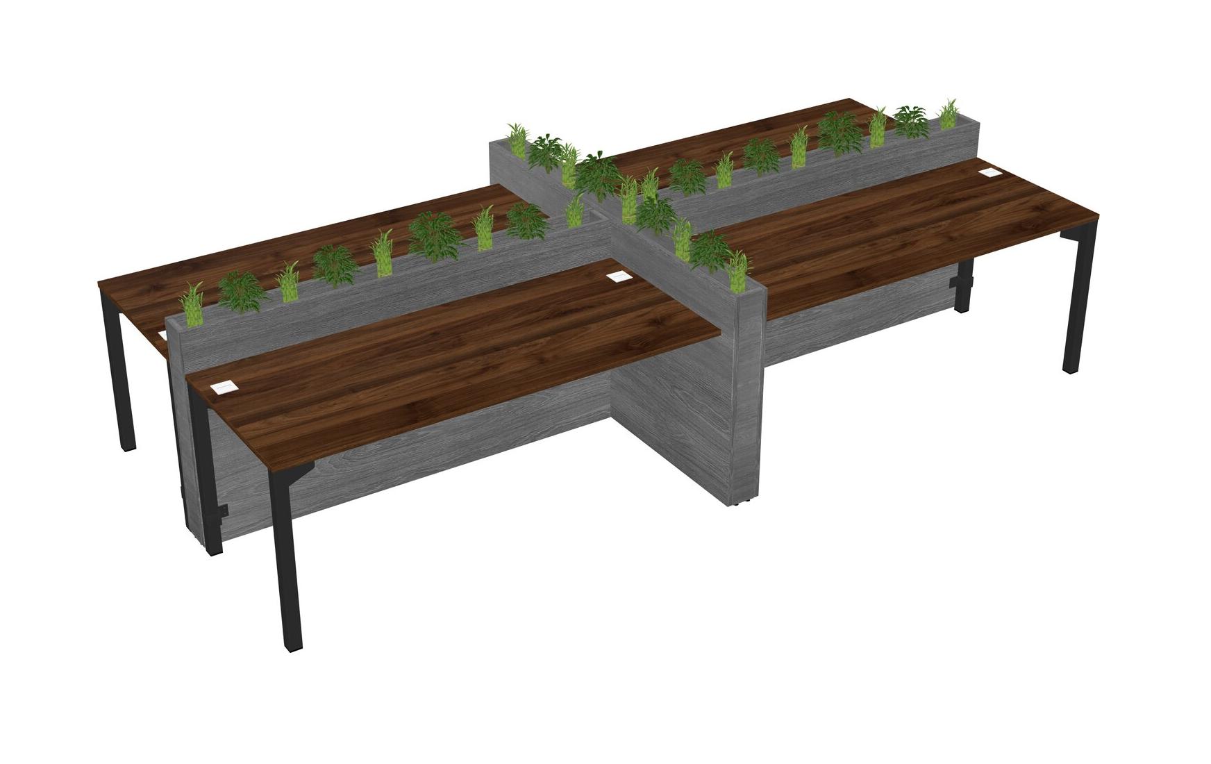Columbia Walnut Rectangular Shared Office Desk For 4 Persons Let Nature Help Flourish Your Productivity The Base Comes With An Adjustable Shelf To Provide Space For Pots (Pots & Plants Sold Separately)