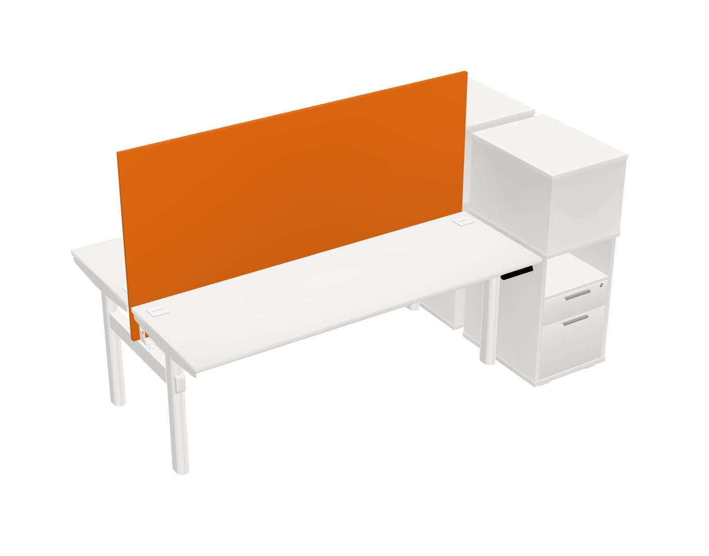 White Shared Dual Motor Electric Height Adjustable Desks With Side Cabinets For 2 Persons