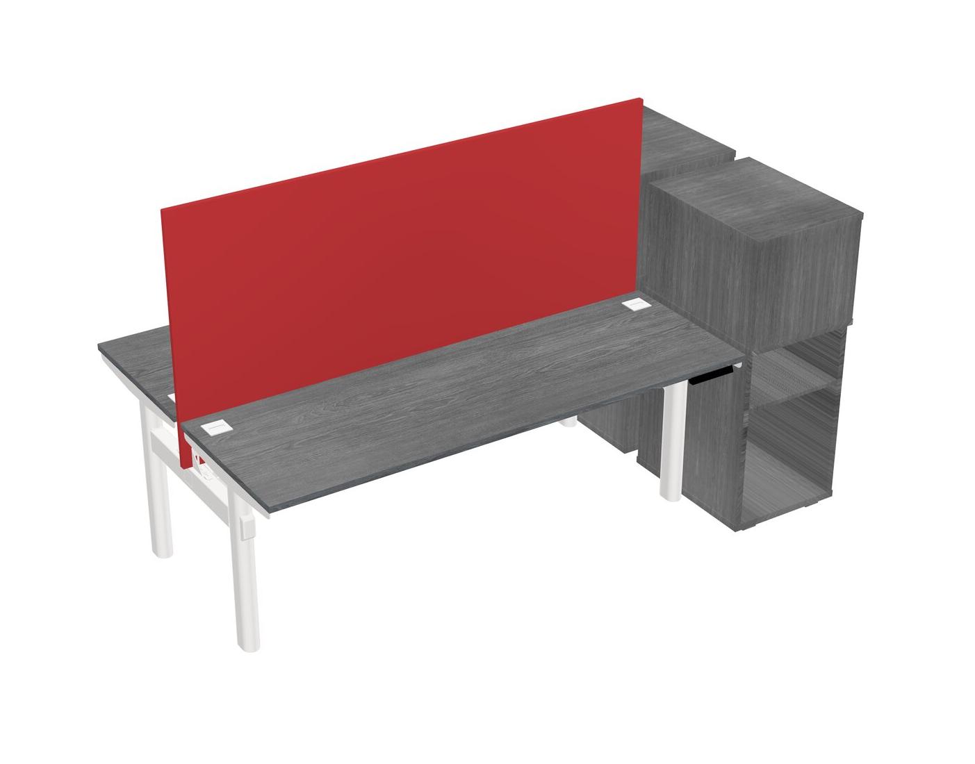 Grey Shared Dual Motor Electric Height Adjustable Desks With Side Cabinets For 2 Persons