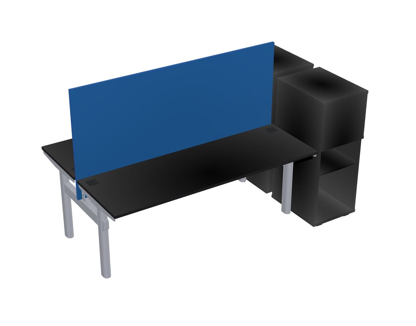 Black Shared Dual Motor Electric Height Adjustable Desks With Side Cabinets For 2 Persons