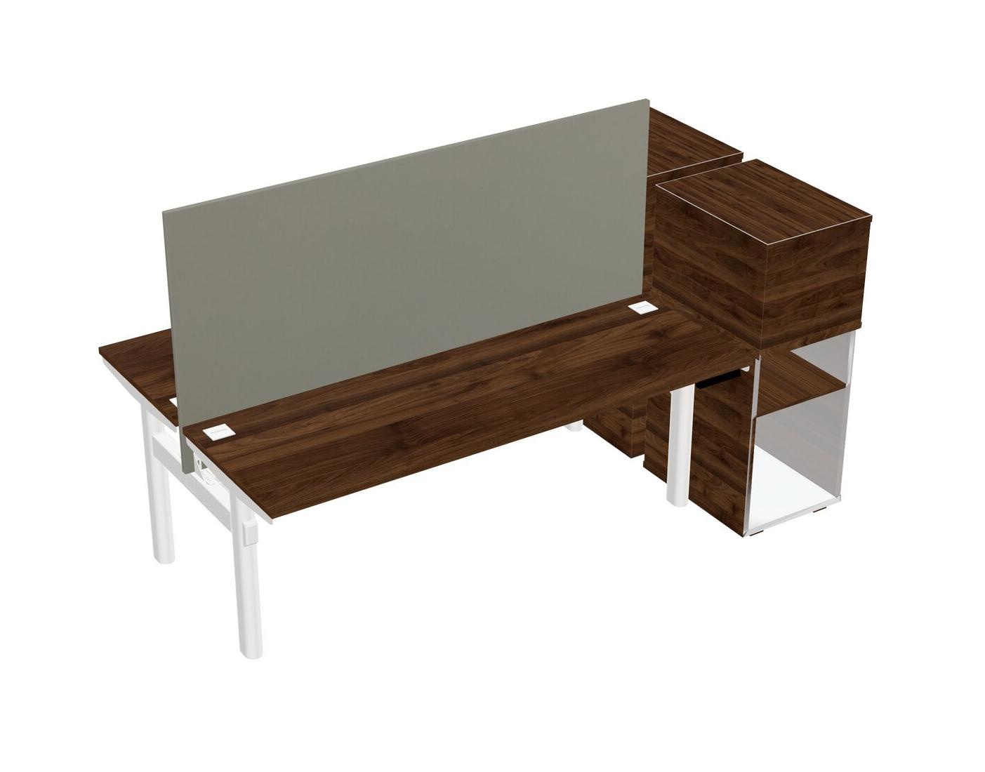 Columbia Walnut Shared Dual Motor Electric Height Adjustable Desks With Side Cabinets For 2 Persons