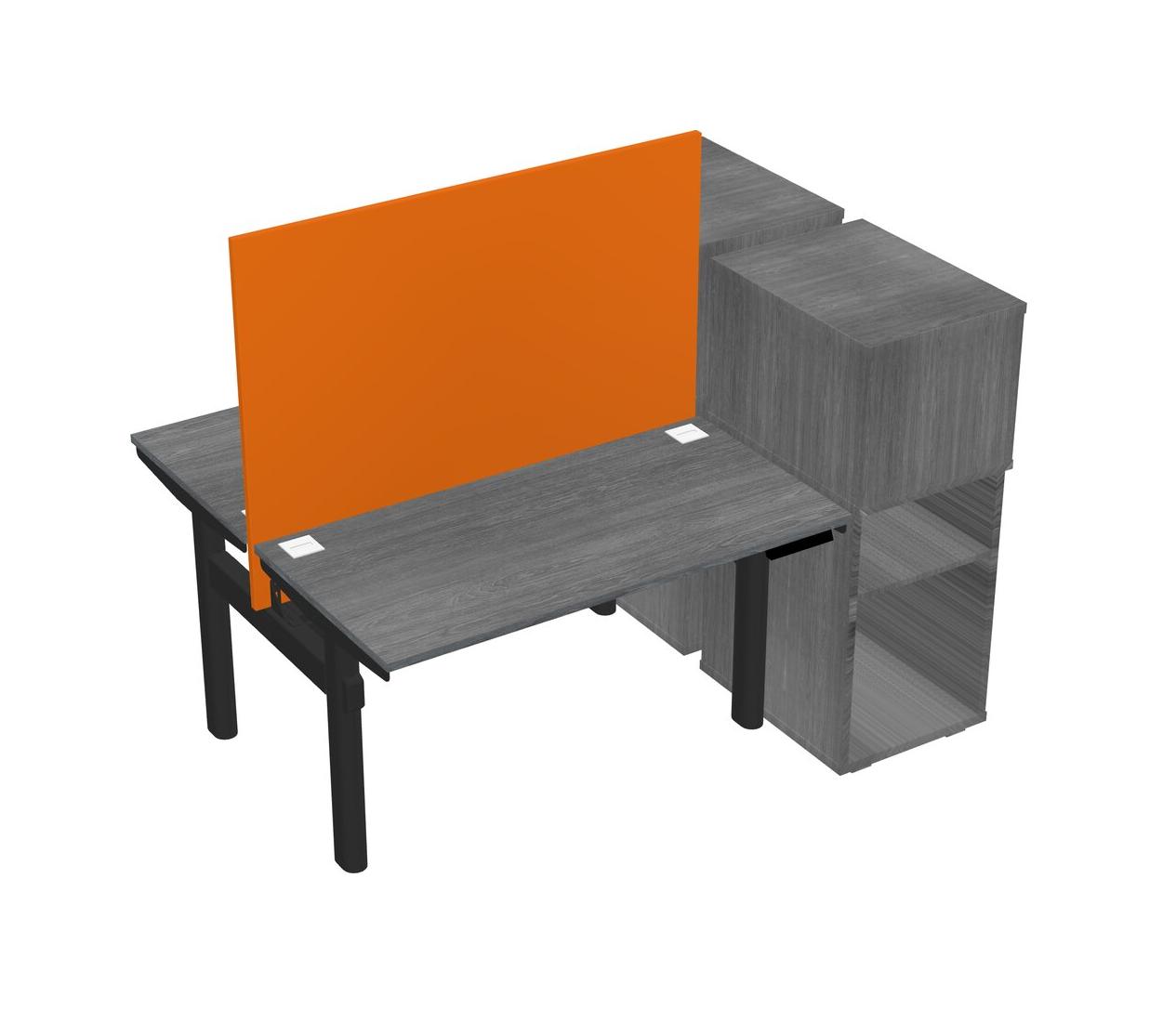 Grey Shared Dual Motor Electric Height Adjustable Desks With Side Cabinets For 2 Persons