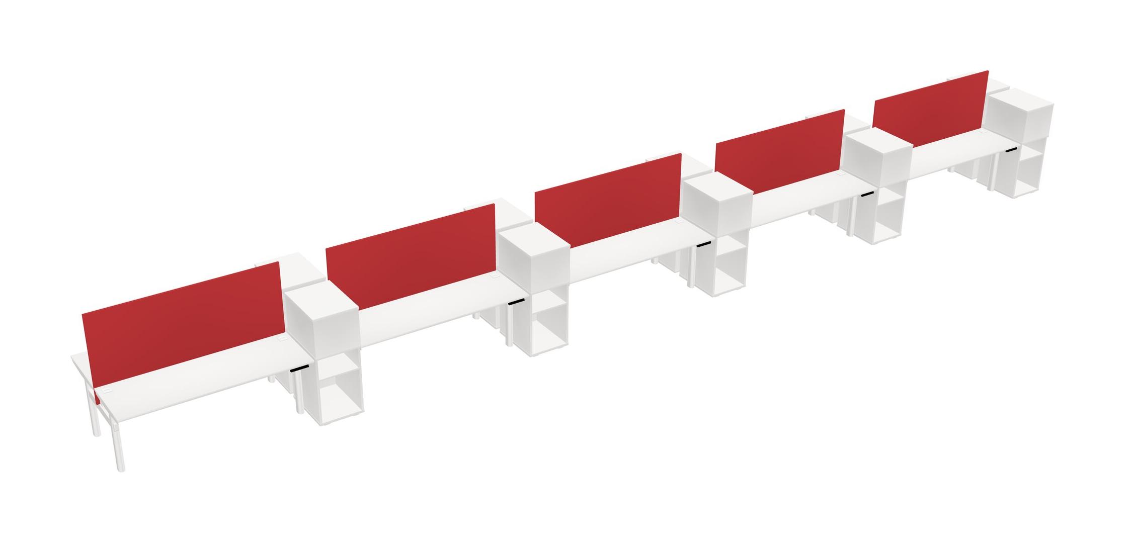 White Shared Dual Motor Electric Height Adjustable Desks With Side Cabinets For 10 Persons