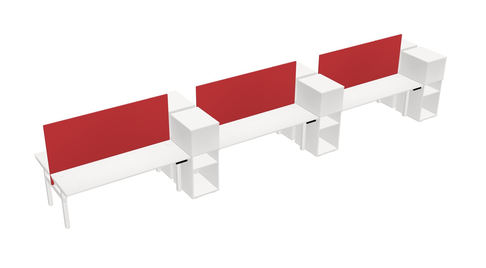 White Shared Dual Motor Electric Height Adjustable Desks With Side Cabinets For 6 Persons