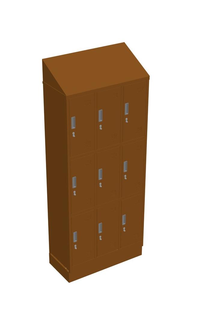 Orange 9 Door Locker With Locker Base With Slopping Top - Foldable Structure - Padlock
