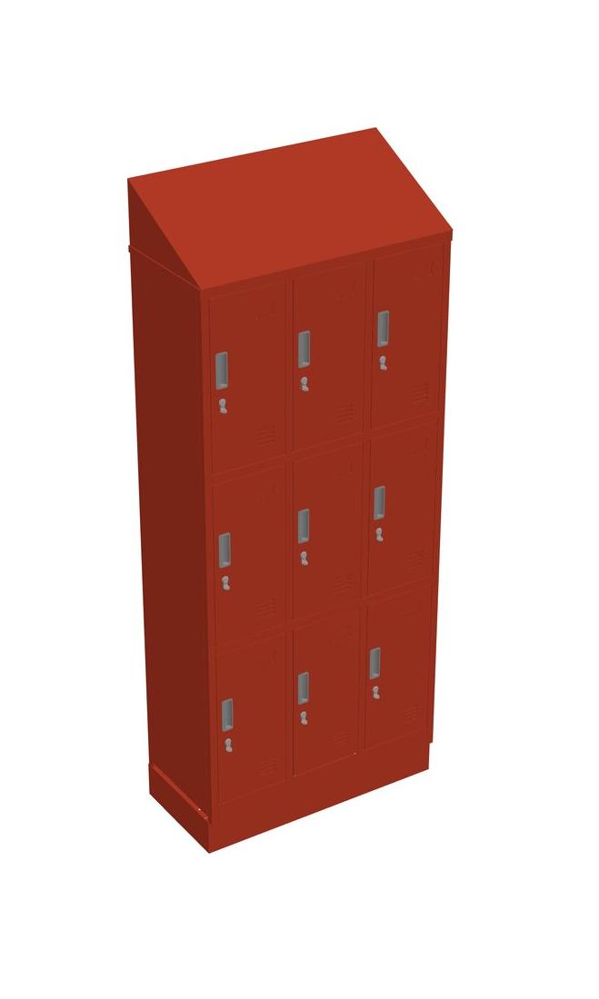 Salmon Pink 9 Door Locker With Locker Base With Slopping Top - Foldable Structure - Padlock